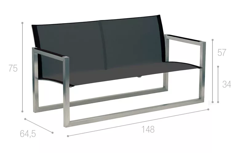Royal Botania Ninix Sofa mit Batyline Bespannung, erhältlich mit Batyline-Bespannung in verschiedenen Farben und wahlweise mit elektropoliertem Edelstahl-Gestell.