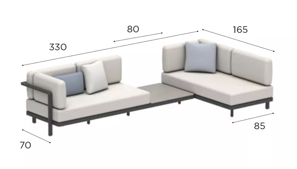 Alura Lounge Ecksofa 250 cm mit Aluminiumgestell Denjenigen, die dachten, dass es unmöglich sei, eine wirklich innovative Aluminium-Serie herauszubringen, wird mit Red Label Alura Lounge nun das Gegenteil bewiesen. Und all das ohne kompromittierendem Komfort und Funktionalität. Die hochwertige Loungeserie mit abgerundeten Ecken - erhältlich in schwarzen, weißen und sandfarbenen Texturen - begeistert mit ergonomischen Formen. Aluminium Gestell Batyline® Gewebe Ganzjährig wetterfest Leicht zu reinigen Maße (B × T × H) 250 × 165 × 80 cm