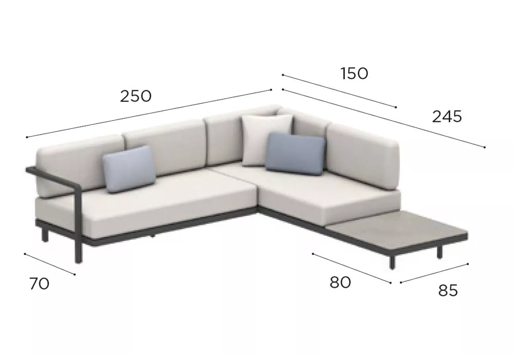 250 × 245 × 80 cm