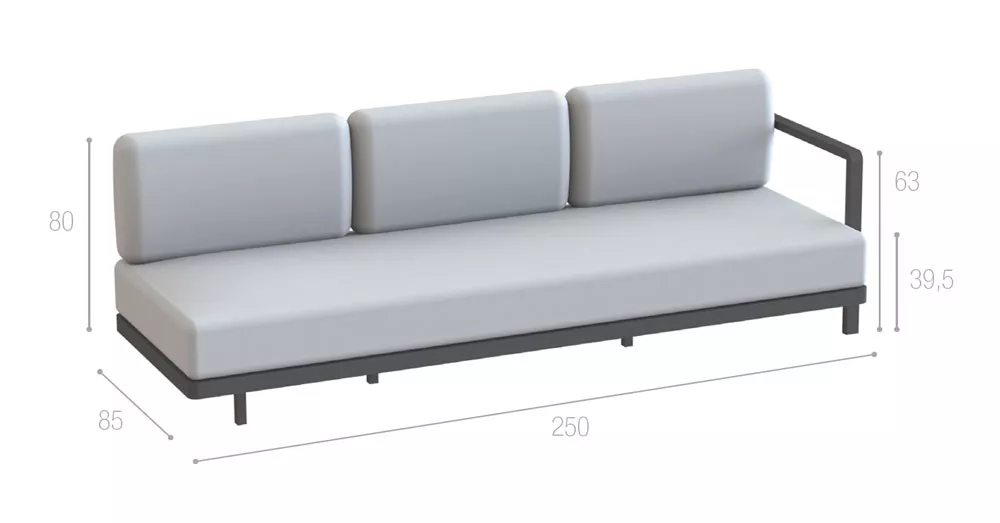 Royal Botania Red Label • Alura Lounge Loungesofa Denjenigen, die dachten, dass es unmöglich sei, eine wirklich innovative Aluminium-Serie herauszubringen, wird mit Red Label Alura Lounge nun das Gegenteil bewiesen. Und all das ohne kompromittierendem Komfort und Funktionalität. Die hochwertige Loungeserie mit abgerundeten Ecken - erhältlich in schwarzen, weißen und sandfarbenen Texturen - begeistert mit ergonomischen Formen. Aluminium Gestell Batyline® Gewebe Ganzjährig wetterfest Leicht zu reinigen Maße (B × T × H) 250 × 85 × 80 cm