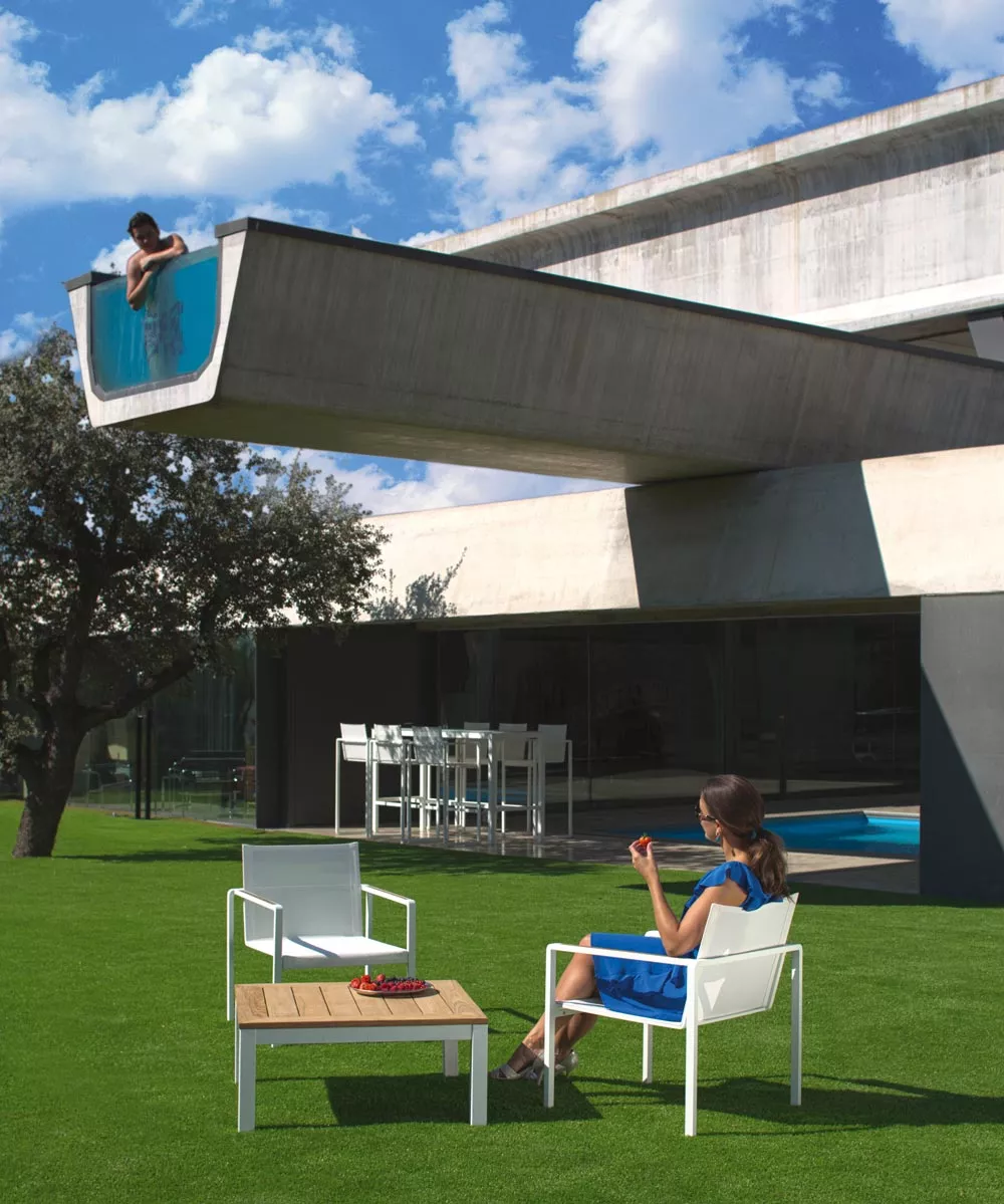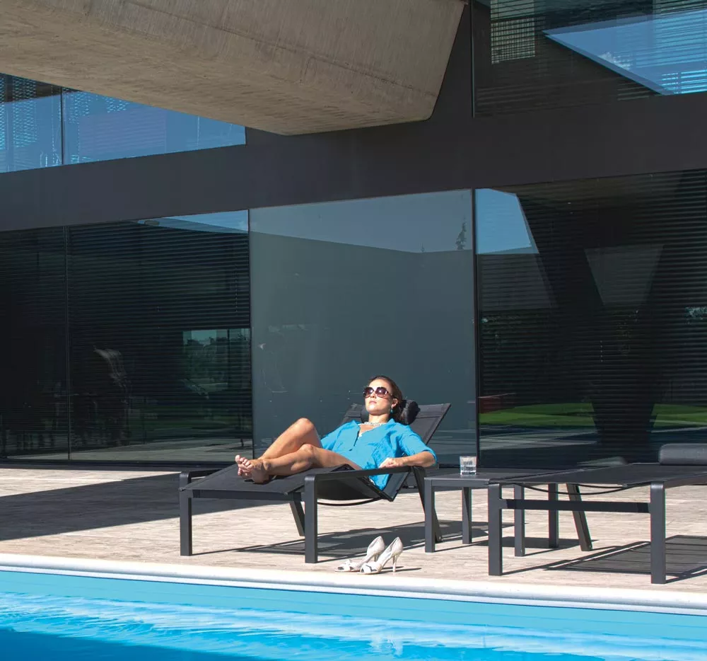 Denjenigen, die dachten, dass es unmöglich sei, eine wirklich innovative Aluminium-Serie herauszubringen, wird mit Red Label Alura nun das Gegenteil bewiesen. Und all das ohne kompromittierendem Komfort und Funktionalität. Die Serie der stapelbaren Stühle mit abgerundeten Ecken, Relaxingstühle, und Barhocker - erhältlich in schwarzen, weißen und sandfarbenen Texturen - wird nun mit einer Liege mit ergonomischen Formen vervollständigt. Mit einem kurzen Druck aktiviert man einen hydraulischen Kolben, versteckt im innern des Rahmens, um den Sitz abzusenken, die Rückenlehne und Knie anzuheben, während die Füße abgesenkt werden. Das patentierte Werk der Ingenieurkunst ist nur in diesem Royal-Botania-Meisterwerk zu finden und setzt neue Standards in der Outdoor-Gemütlichkeit. Die Alura Kollektion ist in schwarz, weiß und perlgrau erhältlich.