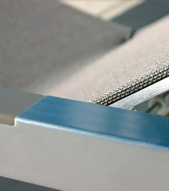 Die Batyline Bespannung garantiert eine ausgezeichnete Wetter- und UV-Beständigkeit. Da die Bespannung keine Feuchtigkeit aufnimmt trocknet das Gewebe schnell, ist weniger empfindlich für Flecken und einfach zu reinigen.