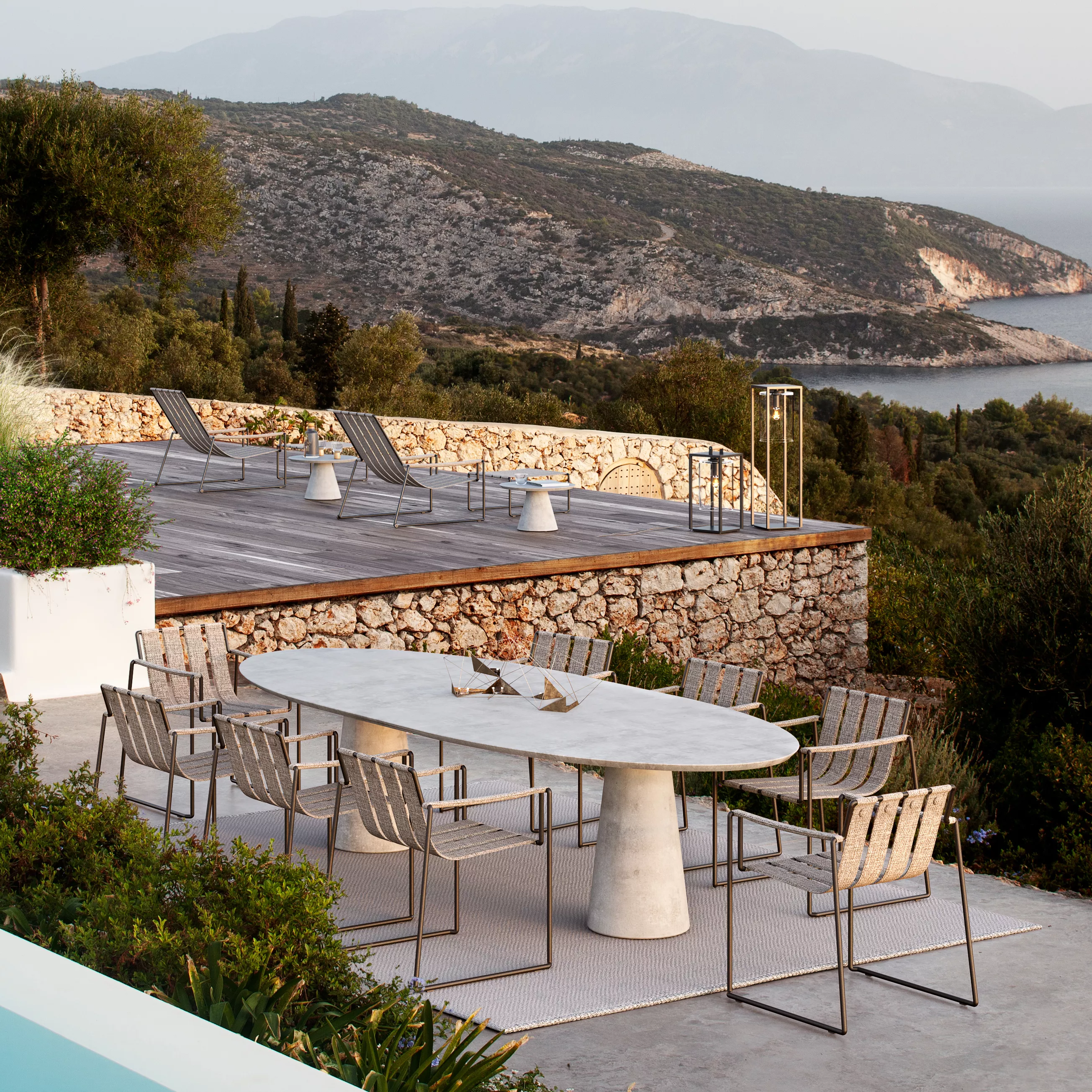 Originell und modern ist die neue Strappy-Kollektion von Royal Botania. Die Stühle verfügen über eine beschichtete Edelstahlstruktur, die aus einer einzigen durchgehenden Stange besteht. So wird ein beständiger, funktionaler Rahmen gebildet, an dem die Sitzgurte und Armlehnen befestigt sind. Gut verdeckt von der Polsterung sind die Aluminiumbänder, die Rücken- und Sitzfläche bilden. DIe Polster können zum Waschen oder verstauen der Sitzmöbel leicht abgenommen werden. Auch das Austauschen der Bepolsterung ist somit kein Problem.