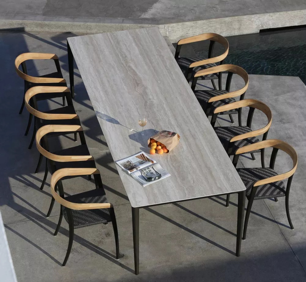 Alle Keramikplatten von Royal Botania sind gegen allen Witterungsverhältnissen wie Hitze, Regen und Schnee resistent. Das beschichtete Aluminiumgestell eignet sich besonders gut für den Einsatz im maritimen Bereich.