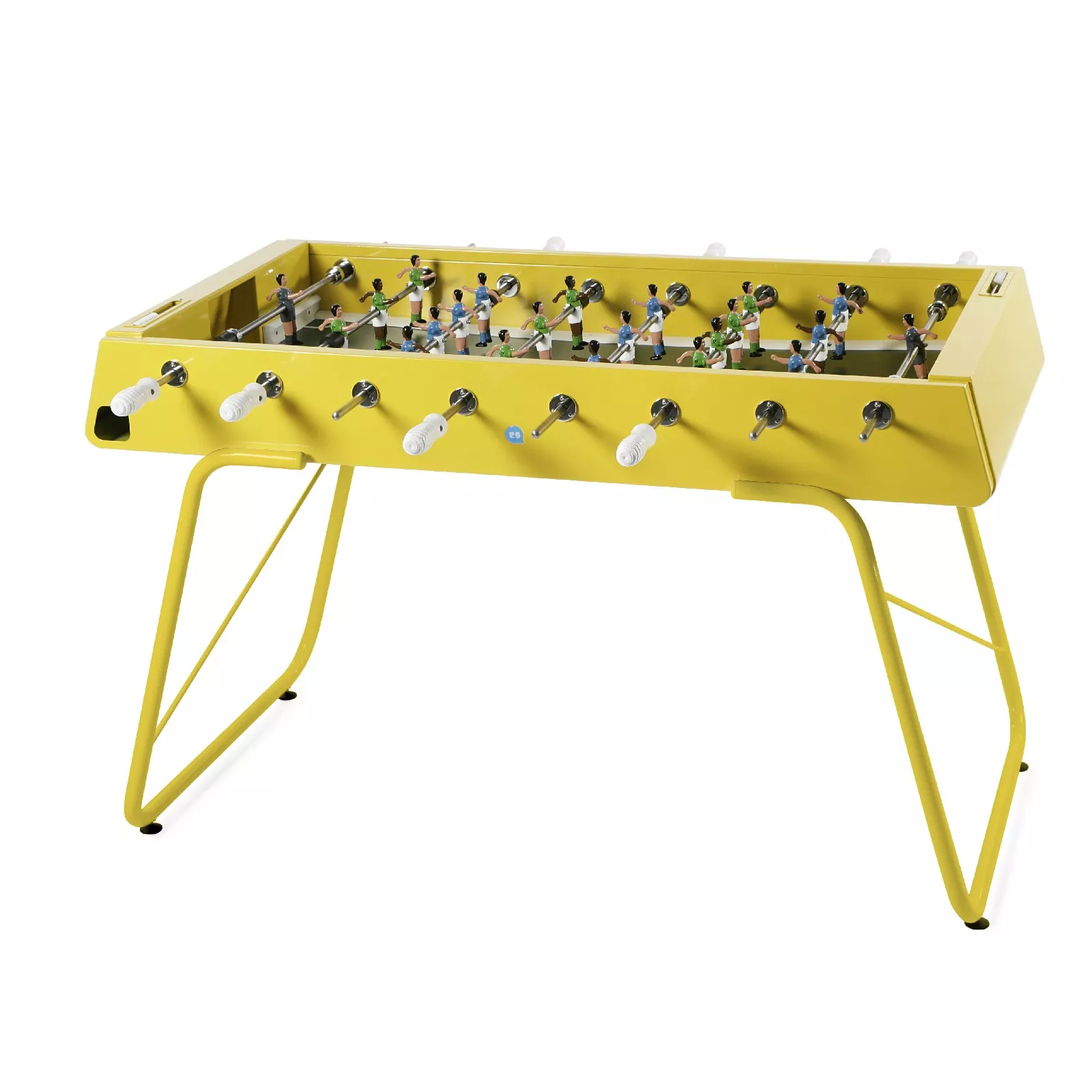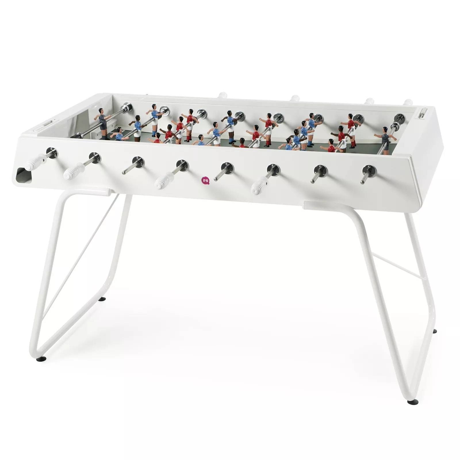 RS Barcelona Tischkicker. Auch der Tischkicker der katalanischen Edelstahl-Manufaktur RS Barcelona ist wie die Tischtennisplatte Ping Pong ein wahres Design-Highlight. Erhältlich ist der in Handarbeit gefertigte Fußballtisch in drei verschiedenen Modellen. Sie alle eint ihre überragende Qualität und die individuelle Konfiguration - von der Farbe des Bodys und der Beine bis hin zum Logo und Wunsch-Trikot der liebevoll handbemalten Fußballspieler-Figuren.