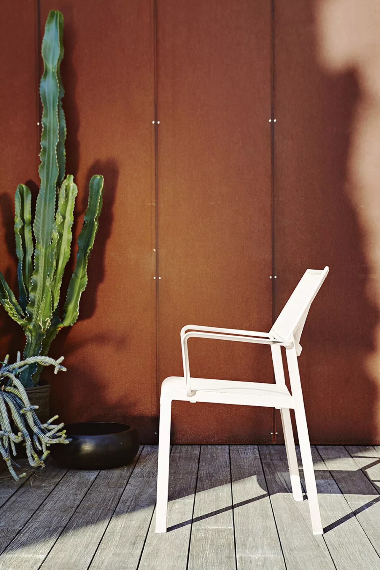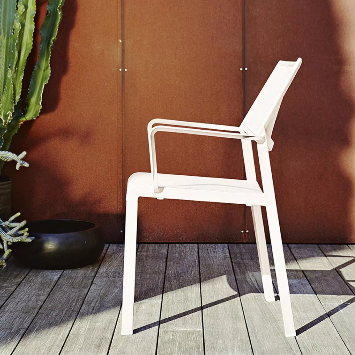 Roberti Samba Rio Outdoormöbelkollektion zeichnen leichte und grafische Linien mit einer besonderen Identität aus, die ein einfaches und raffiniertes Aussehen bietet. Outdoorsessel, Tische und Stühle sind in der eleganten weißen Farbe und in der Farbe Terra erhältlich. Samba Rio ist eine moderne Kollektion, die perfekt als Terrassenmöbel und Gartenmöbel dient. Roberti ist ein hochwertiges und vielseitiges Vorschlagsensemble für die Einrichtung des Außenbereichs. Die Vielfalt der Kollektionen kann die fachliche Meisterschaft, das originelle Design und die perfekte Auswahl der Materialien bestens ausdrücken. Das Leben wird somit eine freie, entspannende Lebenserfahrung, die man gern im Freundeskreis teilt. Elegantes Design der Gartenmöbel integriert sich harmonisch in Ihr Ambiente. Lassen Sie sich von Roberti Lifestyle inspirieren.