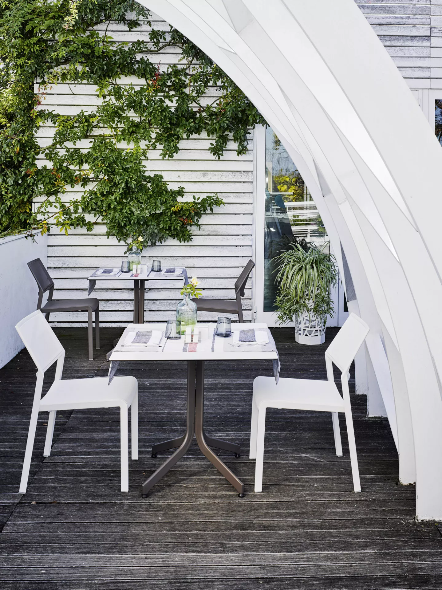 Roberti Samba Rio Outdoormöbelkollektion zeichnen leichte und grafische Linien mit einer besonderen Identität aus, die ein einfaches und raffiniertes Aussehen bietet. Outdoorsessel, Tische und Stühle sind in der eleganten weißen Farbe und in der Farbe Terra erhältlich. Samba Rio ist eine moderne Kollektion, die perfekt als Terrassenmöbel und Gartenmöbel dient. Roberti ist ein hochwertiges und vielseitiges Vorschlagsensemble für die Einrichtung des Außenbereichs. Die Vielfalt der Kollektionen kann die fachliche Meisterschaft, das originelle Design und die perfekte Auswahl der Materialien bestens ausdrücken. Das Leben wird somit eine freie, entspannende Lebenserfahrung, die man gern im Freundeskreis teilt. Elegantes Design der Gartenmöbel integriert sich harmonisch in Ihr Ambiente. Lassen Sie sich von Roberti Lifestyle inspirieren.
