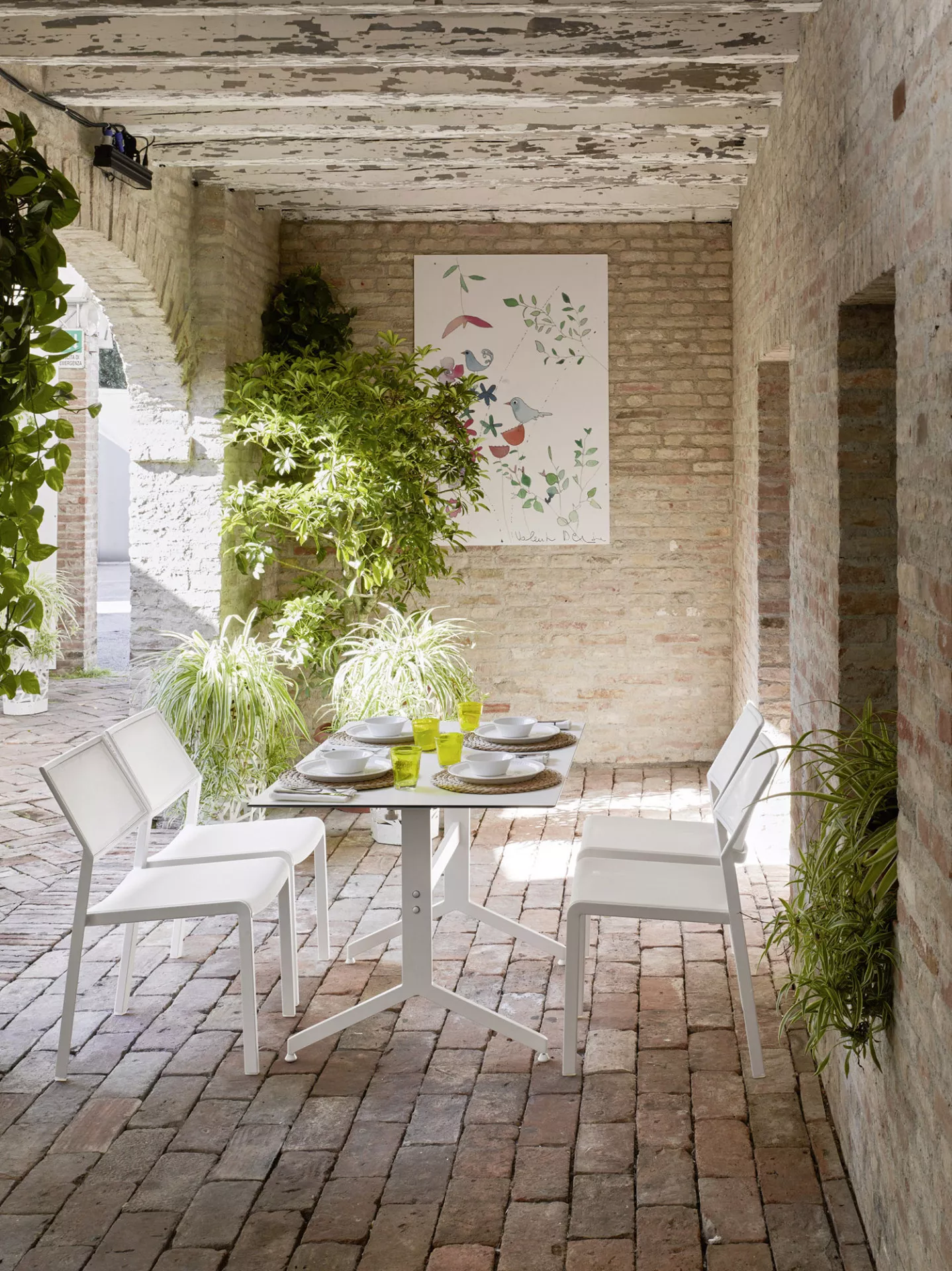 Roberti Samba Rio Outdoormöbelkollektion zeichnen leichte und grafische Linien mit einer besonderen Identität aus, die ein einfaches und raffiniertes Aussehen bietet. Outdoorsessel, Tische und Stühle sind in der eleganten weißen Farbe und in der Farbe Terra erhältlich. Samba Rio ist eine moderne Kollektion, die perfekt als Terrassenmöbel und Gartenmöbel dient. Roberti ist ein hochwertiges und vielseitiges Vorschlagsensemble für die Einrichtung des Außenbereichs. Die Vielfalt der Kollektionen kann die fachliche Meisterschaft, das originelle Design und die perfekte Auswahl der Materialien bestens ausdrücken. Das Leben wird somit eine freie, entspannende Lebenserfahrung, die man gern im Freundeskreis teilt. Elegantes Design der Gartenmöbel integriert sich harmonisch in Ihr Ambiente. Lassen Sie sich von Roberti Lifestyle inspirieren.