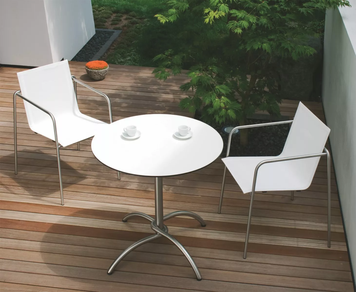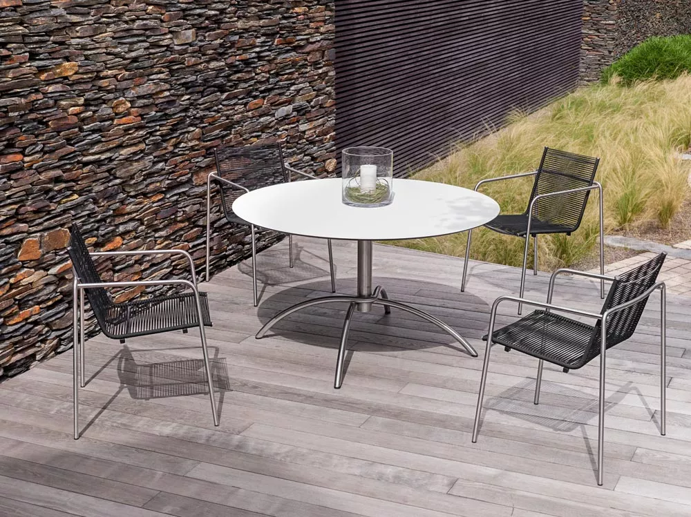 Sessel Taku von Fischer Möbel rostfreiem Edelstahl (wahlweise elektropoliert & besonders witterungsfest) und Batyline® Gewebe.