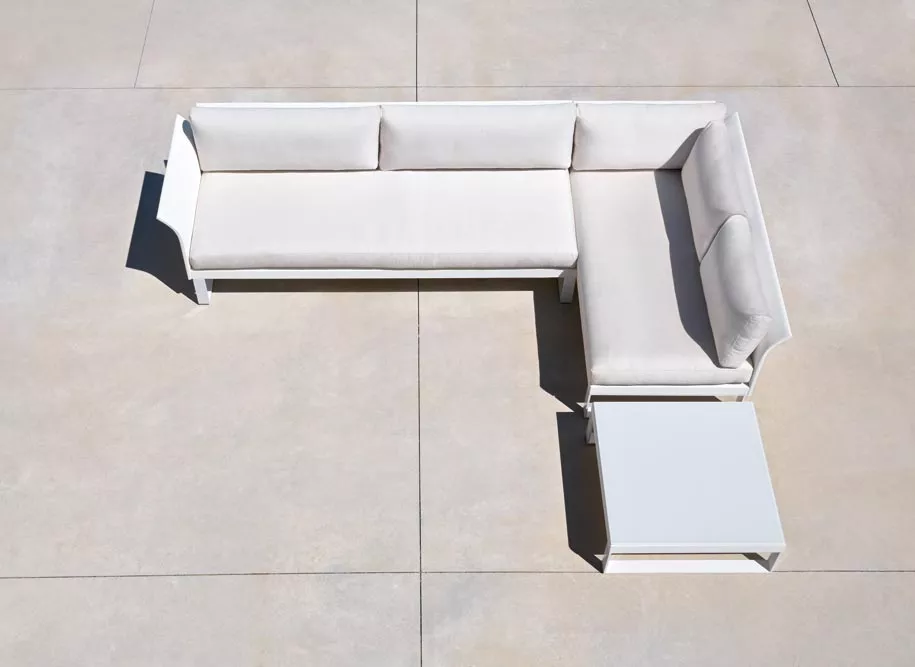 Komfy Loungesofa 200cm von SifasUnendlich modular ist dieses niedrige Loungeset dezent und elegant und ermöglicht es Ihnen, individuelle Loungebereiche zu schaffen. Mit nur 5 strukturellen Teilen (2 Sitzgrößen, Armlehnen und austauschbare Rückenlehnen, in Aluminium- oder Edelstahlbeinen) kann Komfy sowohl als gerades Sofa oder klassischer Sessel präsentiert werden, ebenso wie als Lounge-Eckkombination, zu der nach Wunsch und Bedarf eine Bank, eine Chaiselongue oder eine Méridienne hinzugefügt werden kann. Lackiertes Aluminium Edelstahlverchromte Aluminiumstrukturen, lackiert und bei (392°F) eingebrannt. Die Epoxidpulverbeschichtung wird mittels elektrostatischer Sprühtechnik gleichmäßig (80-Mikron-Schicht) aufgetragen. Bei diesem Verfahren werden die Mikroperlen des Pulvers von der gesamten Metalloberfläche angezogen und haften perfekt am Aluminium. Im Ofen schmelzen sie durch die Hitze und härten aus, wodurch eine gleichmäßige und extrem widerstandsfähige Lackschicht entsteht. Die von Sifas® aufgetragene Lackierung ist entweder glatt und glänzend oder hat eine strukturierte Granitoptik. Sie ist wetterbeständig garantiert. Der Prozess wird während der Produktion getestet, um die Haftung der Lackierung auf dem Metall mithilfe des Gitterschnitt-Tests zu überprüfen, einer in der Automobilindustrie verwendeten Methode (ISO-Norm 2409). Textylene® Das gewebte PVC-beschichtete Polyestergewebe Textylene® ist in einer Vielzahl von Märkten führend. Am bekanntesten als herausragender Stoff für Freizeitmöbel, findet man Textylene® weltweit auf Stühlen, Kissen und Sonnenschirmen. Unübertroffen in Stärke und Schönheit besteht Textylene® aus PVC-beschichtetem, gewebtem Polyester, das nicht ausleiert. Textylene® ist flammhemmend, heißsiegelfähig, schimmelresistent und stabil bei sowohl heißen als auch kalten Temperaturen. Textylene® ist ein hervorragender Vertragsstoff in Bezug auf Haltbarkeit, speziell aus Garnen entwickelt, die für viele Jahre im Außenbereich gegen Abnutzung standhalten. Minimaler Pflegeaufwand und Farben, die auch nach Jahren kontinuierlicher Außenexposition selbst unter härtesten Wetterbedingungen klar und lebendig bleiben. Technische Daten und FarbdatenStruktur Struktur aus 304 Edelstahlrohren, zu 90 % recycelbar, elektrolytisch poliert, wodurch oberflächliche Eisenpartikel entfernt werden und eine erhöhte Beständigkeit gegenüber atmosphärischer Korrosion, chemischen Einflüssen und Salznebel gewährleistet wird. Verschleißfeste Gleiter aus mit Glasfaser verstärktem Polyamid Komfort Kissen aus Outdoor-Acryl Tischplatte Glasplatte auf der Unterseite bei 900° C (1652°F) emailliert, chemisch auf der Oberfläche und an den Kanten mattiert (keine Fingerabdrücke) Modularität Modulares Wohnzimmermöbel-Set. Die Module können nach Belieben miteinander verbunden werden, um einteilige Sofas zu bilden. Öko-Design Komfy wurde aus einem nachhaltigen Ansatz heraus entwickelt, indem langlebige Materialien mit geringer CO₂-Bilanz gewählt wurden, die zudem recycelbar sind und ein gutes Verhältnis von Gewicht zu Leistung bieten – mit dem Ziel, die Umweltbelastung von Produkten und Dienstleistungen über ihren gesamten Lebenszyklus hinweg zu begrenzen. Maße: (B × T × H) 220 × 85 × 74,5 cm