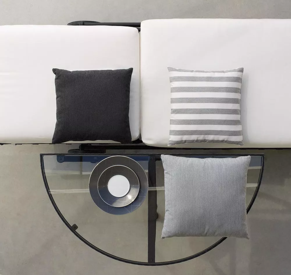 Kross Loungesofa 2-sitzer von Sifas Authentisch und wetterbeständig. Luxus-Outdoor-Möbel. Rustikale Schlichtheit und ausdrucksstarke Stärke prägen diese umfangreiche Kollektion, die sich für Wohnbereiche, Familienräume, Ess- und Barbereiche eignet. Diese außergewöhnliche technologische Konstruktion aus „ultraleichtem“ geschmiedetem Aluminium macht sie widerstandsfähig gegenüber selbst extremen Außenbedingungen. Technische Daten und FarbdatenStruktur Verchromtes und lackiertes, geschmiedetes oder gegossenes Aluminium mit strukturierter Epoxidbeschichtung. Verschleißfeste Gleiter aus Polyamid, verstärkt mit Glasfaser. Komfort Kissen aus Polyester-Acryl. Tischplatte Gehärtete Glasplatte, eingelassen in einen Rahmen. Maße: (B × T × H) 128 × 87 × 91 cm