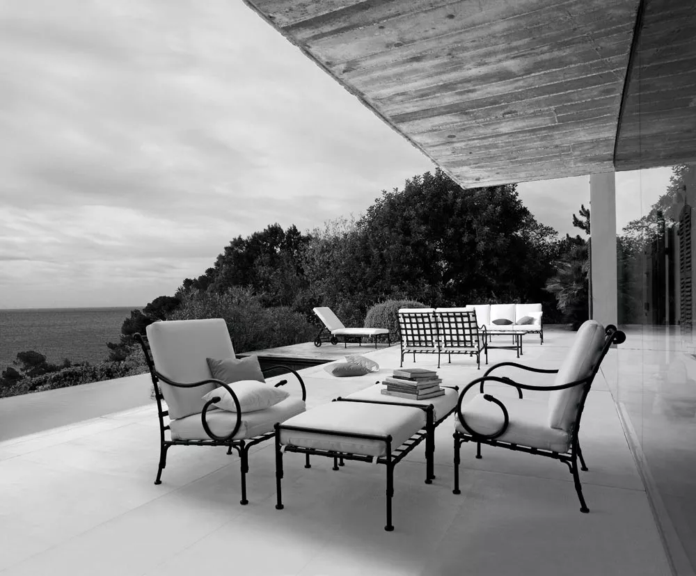 Authentisch und wetterbeständig. Luxus-Outdoor-Möbel. Rustikale Schlichtheit und ausdrucksstarke Stärke prägen diese umfangreiche Kollektion, die sich für Wohnbereiche, Familienräume, Ess- und Barbereiche eignet. Diese außergewöhnliche technologische Konstruktion aus „ultraleichtem“ geschmiedetem Aluminium macht sie widerstandsfähig gegenüber selbst extremen Außenbedingungen.