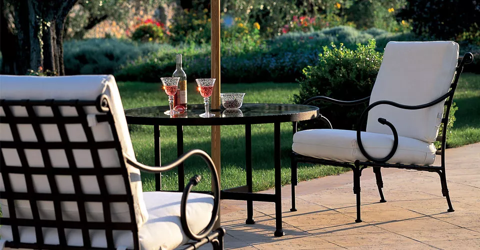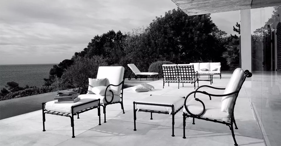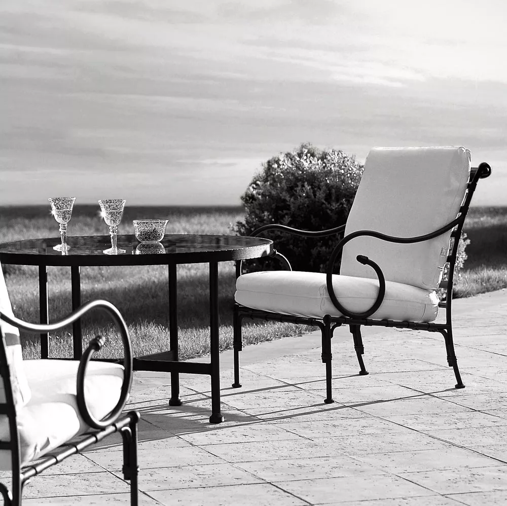 Authentisch und wetterbeständig. Luxus-Outdoor-Möbel. Rustikale Schlichtheit und ausdrucksstarke Stärke prägen diese umfangreiche Kollektion, die sich für Wohnbereiche, Familienräume, Ess- und Barbereiche eignet. Diese außergewöhnliche technologische Konstruktion aus „ultraleichtem“ geschmiedetem Aluminium macht sie widerstandsfähig gegenüber selbst extremen Außenbedingungen.