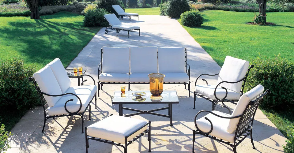 Authentisch und wetterbeständig. Luxus-Outdoor-Möbel. Rustikale Schlichtheit und ausdrucksstarke Stärke prägen diese umfangreiche Kollektion, die sich für Wohnbereiche, Familienräume, Ess- und Barbereiche eignet. Diese außergewöhnliche technologische Konstruktion aus „ultraleichtem“ geschmiedetem Aluminium macht sie widerstandsfähig gegenüber selbst extremen Außenbedingungen.