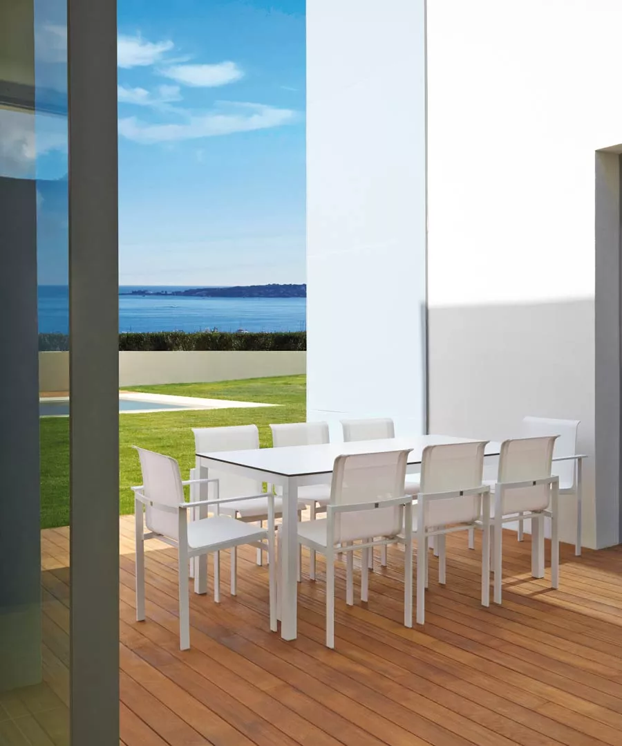 Die jüngste Kollektion von Sifas® ist modern, bequem und leicht und besteht aus lackiertem Aluminium und Textylene® Canvas-Stoff, um jeder Umgebung, sei es Speisezimmer oder familiäres Wohnzimmer, gerecht zu werden.