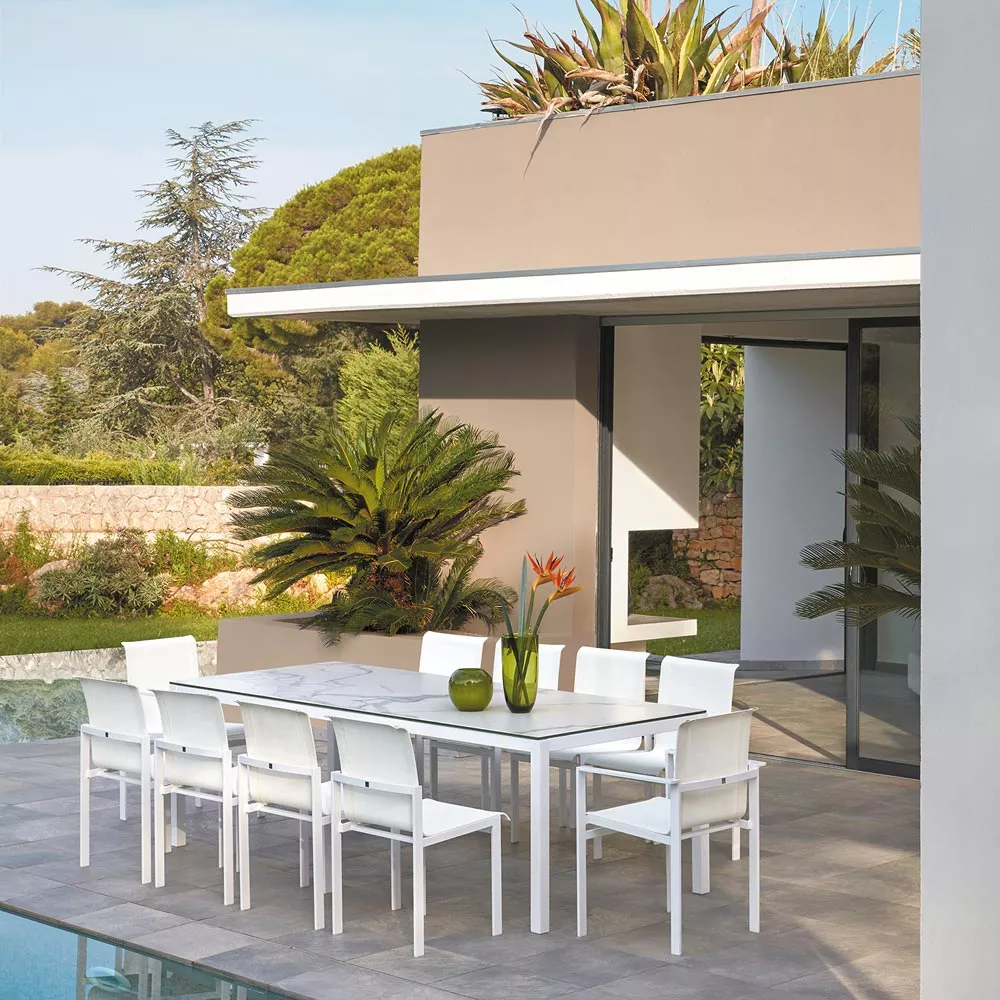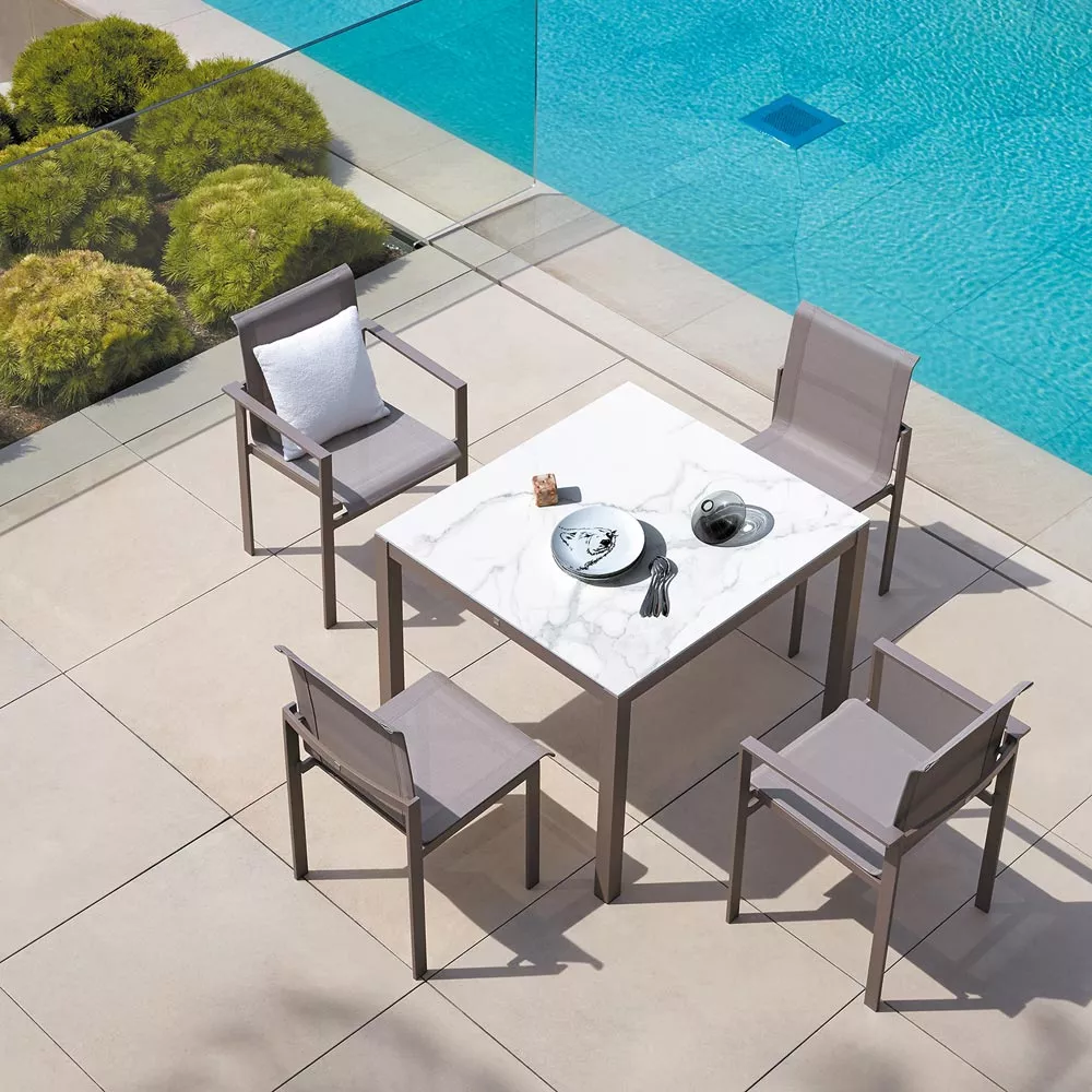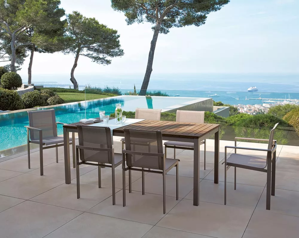 Die jüngste Kollektion von Sifas® ist modern, bequem und leicht und besteht aus lackiertem Aluminium und Textylene® Canvas-Stoff, um jeder Umgebung, sei es Speisezimmer oder familiäres Wohnzimmer, gerecht zu werden.