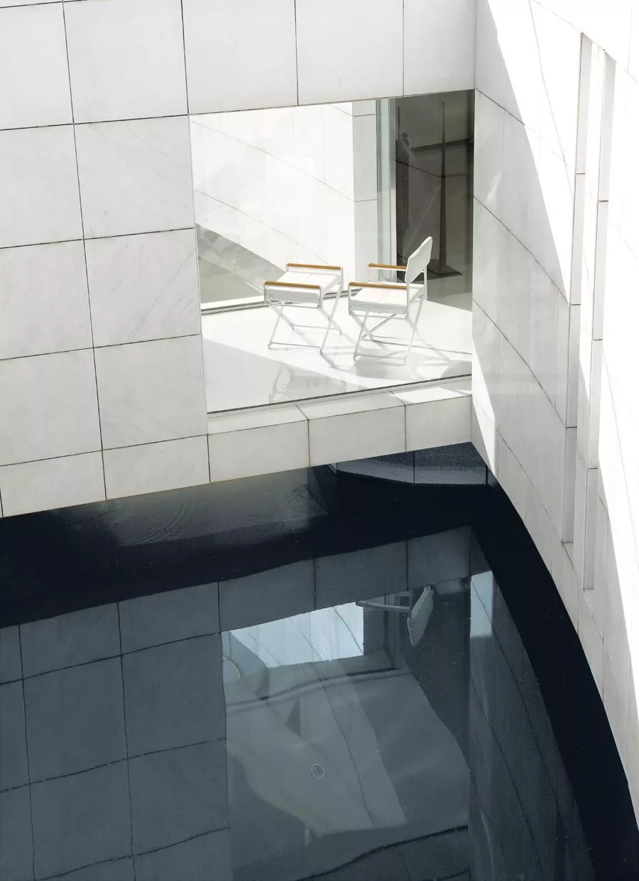 Schick und zeitlos. Eine sublime Neuinterpretation eines großen Klassikers und eines mobilen Möbelensembles für Entspannungs- und Essbereiche, mit perfekter Verarbeitung aus eloxiertem Aluminium. Die Stühle sind in drei Versionen für Sitz und Rücken erhältlich: Standard, Comfort und Luxury.