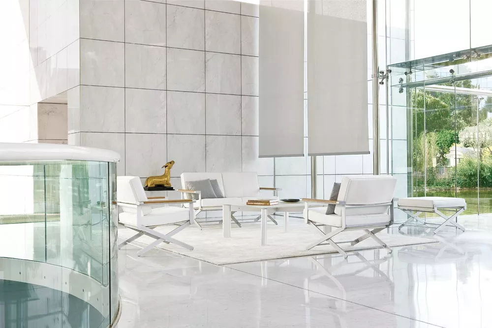 Textilene®, ein gewebtes PVC-beschichtetes Polyestergewebe, ist in zahlreichen Märkten branchenführend. Als herausragender Stoff für Freizeitmöbel ist Textilene® weltweit auf Stühlen, Kissen und Sonnenschirmen zu finden. Unübertroffen in Stärke und Schönheit besteht Textilene® aus PVC-beschichtetem, gewebtem Polyesterfaden, der nicht ausleiert. Textilene® ist flammhemmend, heißsiegelfähig, schimmelresistent und stabil bei sowohl hohen als auch niedrigen Temperaturen. Textilene® ist ein hervorragender Objektstoff hinsichtlich Langlebigkeit, speziell entwickelt aus Garnen, die jahrelanger Abnutzung im Außenbereich standhalten. Geringer Pflegeaufwand und Farben, die auch nach Jahren intensiver Außennutzung frisch und lebendig bleiben – selbst unter extremen Wetterbedingungen.