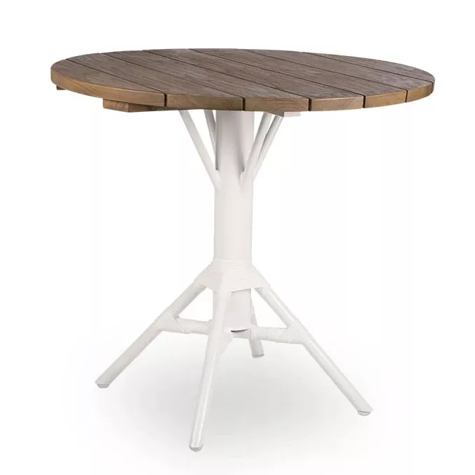 Sika Design Nicole Outdoor Gartentisch rund mit einem Aluminiumgestell und Tischplatte aus Teakholz