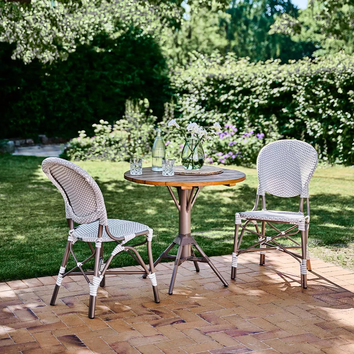 Der Nicole Bistrotisch trägt dazu bei eine leichte Atomsphäre zu schaffen. Das Gestell ist einfach und elegant und mit den verschiedenen Tischplatten können sie den genauen Ausdruck erschaffen den Sie sich wünschen. Da die Tische wetterresistent sind, ist es möglich sie das ganze Jahr draußen zu benutzen. Die Kollektion Alu Affäire wurde für gehobene Cafés und Restaurants entwickelt. Sie ist inspiriert von den bunten Rattanstühlen, die in ganz Paris zu sehen sind. Die Designs dieser Kollektion stammen von Sika-Design und stammen teilweise aus den 50er und 60er Jahren. Die Kollektion ist handgefertigt aus Aluminium und ArtFibre® und kann das ganze Jahr über im Freien verwendet werden. Das Material ist wartungsfrei und hält allen Wetterbedingungen stand. Damit können die ursprünglichen Rattan-Modelle, die nur für den Innenbereich geeignet waren, nun auch im Garten, auf der Terrasse oder dem Balkon verwendet werden.