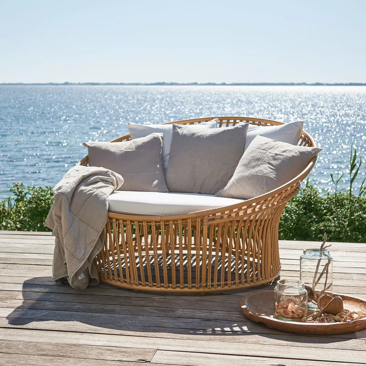 Das Olympia Nest ist ein Teil der Exterior Kollektion. Die Kollektion besteht aus dem neuen Material ALU-Rattan. Das ALU-Rattan besteht aus einer starken aluminium Rahmen, geflochten mit Artfibre. Das Material ist Pflegeleicht und für jedes Wetter geeignet. Das Olympia Loungesofa ist ein bequemes Gartensofa, das eine elegante Besonderheit in einen Garten bringt.