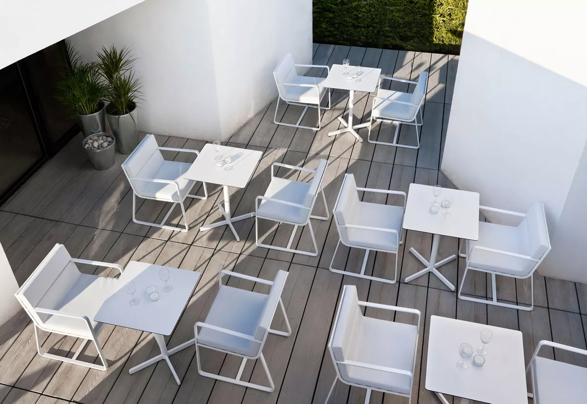 Die Sit Kollektion von Bivaq verfügt über ein modernes Image, ist wetterfest und für den Außenbereich sehr gut geeignet. Die Palette der Komponenten dieser Kollektion bildet eine komplette und ganzheitliche Lösung für Ihren Ess- und viele andere Bereiche. Der Vinytex- oder Acryl-Stoff der Kollektion Sit enthält eine wasserdichte Schicht und ist UV-beständig, damit die Bivaq Kollektion Sit optimal vor Umwelteinflüssen geschützt wird. Die robuste Struktur der Gartenmöbel-Serie ist aus hochwertigem Aluminium hergestellt und mit einer Pulverbeschichtung versehen.