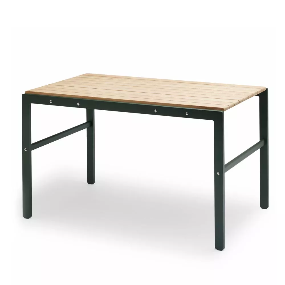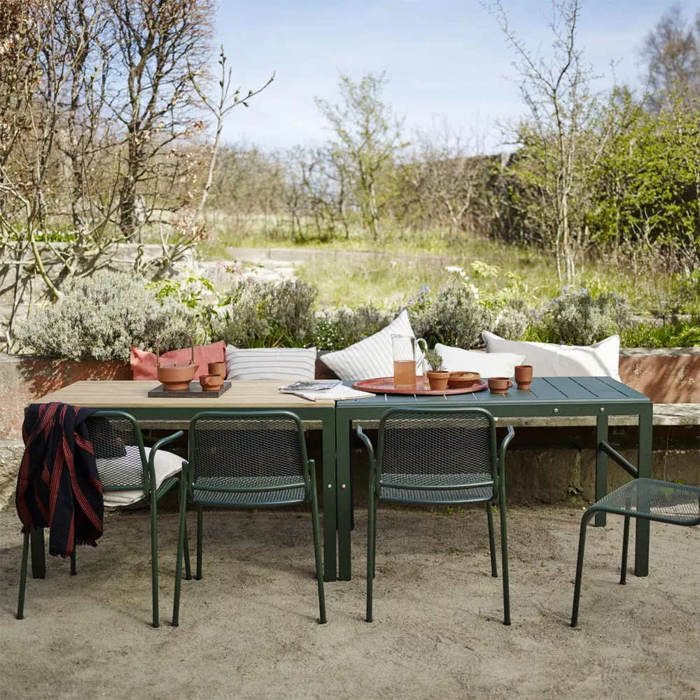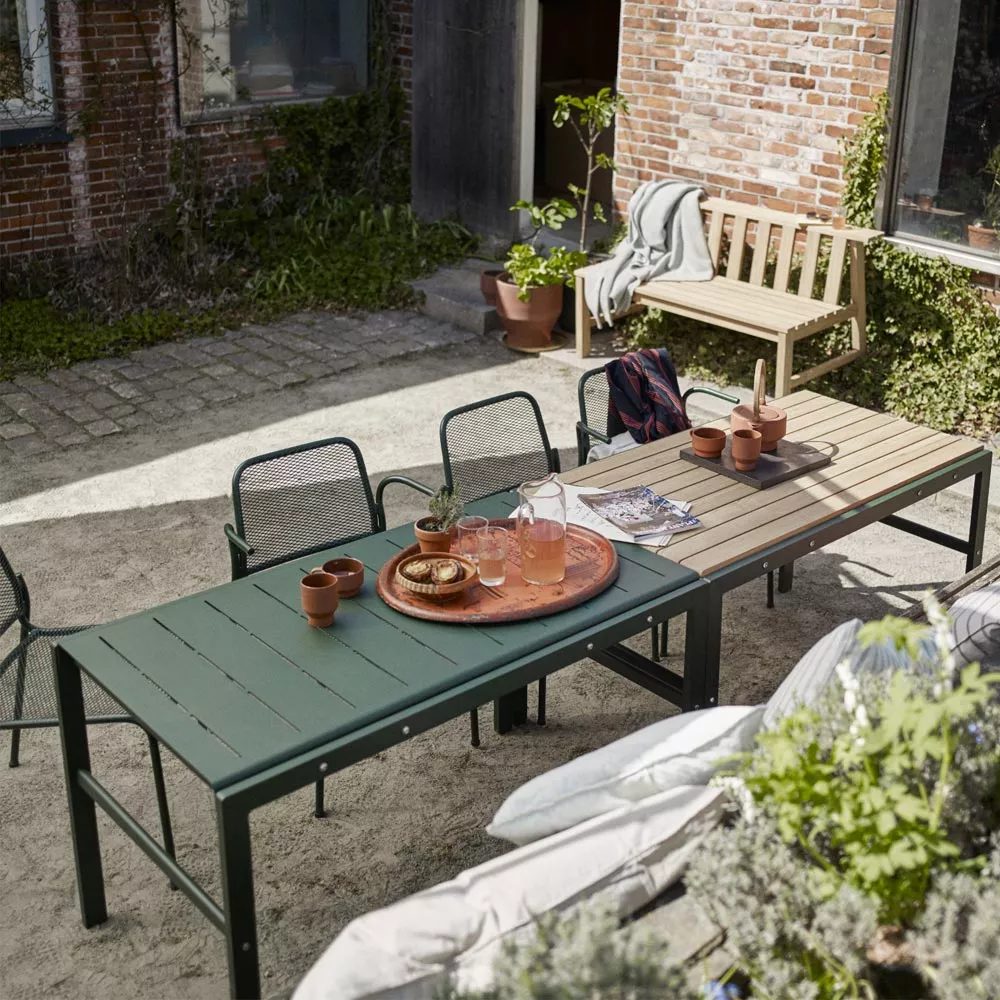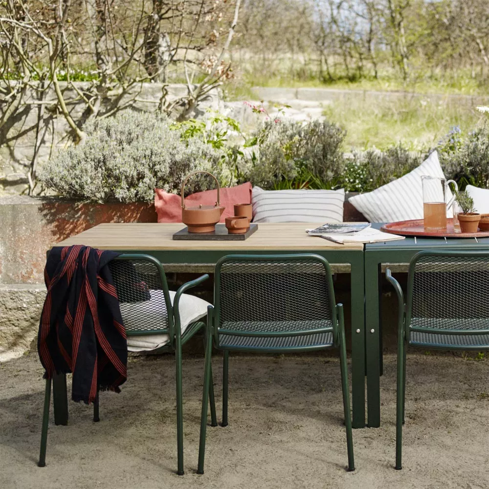 Die minimalistische Reform Serie aus pulverbeschichtetem Aluminium & Teakholz lädt zu entspannter Atmosphäre auf der Terrasse ein. Teak zeichnet sich nicht nur durch seine Eleganz aus, sondern ist auch ein wetterfestes Material für Gartenmöbel, die ihre Schönheit und Funktionalität über Jahre behalten. Teakholz ist reich an natürlichen Ölen und Kernstoffen, die die Holzfasern zusammenhalten sowie Riss und Schimmelbildung vorbeugen. Der Reform Gartentisch und die zugehörige Gartenbank präsentieren sich wie aus einem Guss, die geradlinige Konstruktion sorgt für eine leichte und luftige Optik.