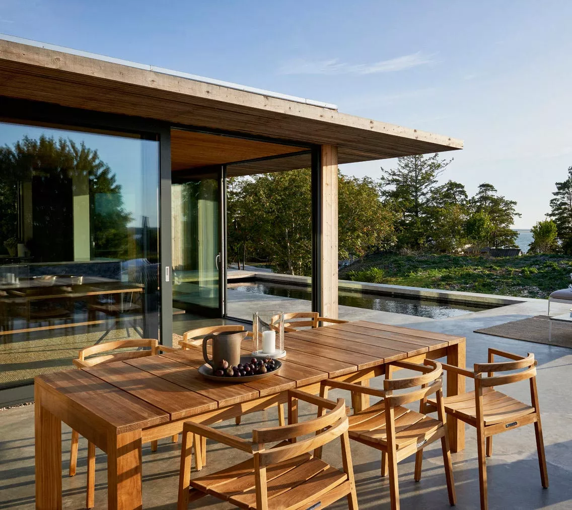 Bönan is a sleepy fishing village on the Swedish coast, a couple of hours’ drive north of Stockholm. It’s just a few boats and a lighthouse, really. On an amazing nearby seaside lot, two of Skargaarden’s founders built what looks like a modern incarnation of a mid-century Case Study House. Now they needed a sofa. One that would capture the spirit of the house, the village and the Baltic coast, as well as art, love and preferably life in general. Oh, and it should be fit to leave by the pool all year, without maintenance or worries. Actually, that last point is something we’ve heard more than once from hotel and restaurant owners in warmer parts of the world as well. So why not make a sofa for Bönan that could be used anywhere? But in the end, we weren’t content just to make a sofa. We created a modular sofa system that can be assembled in many different combinations. Kind of clever, if we may say so.