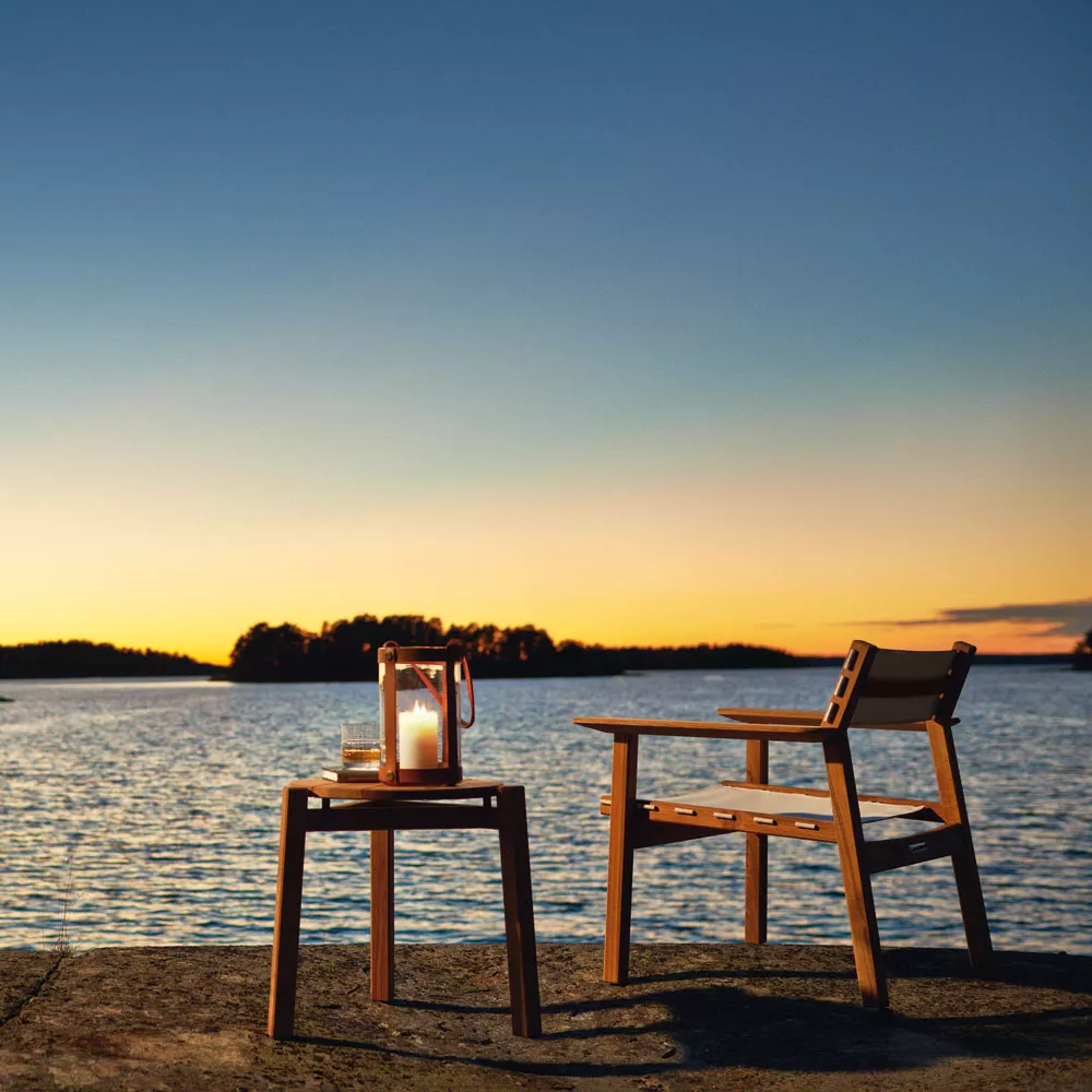 Wenn Sie das ursprüngliche Aussehen der Djurö Kollektion im Outdoor Einsatz behalten möchten, können die Möbelstücke jährlich geölt werden. Sonst wird langsam eine schöne graue Patinierung entstehen, die Djurö noch einzigartiger macht.