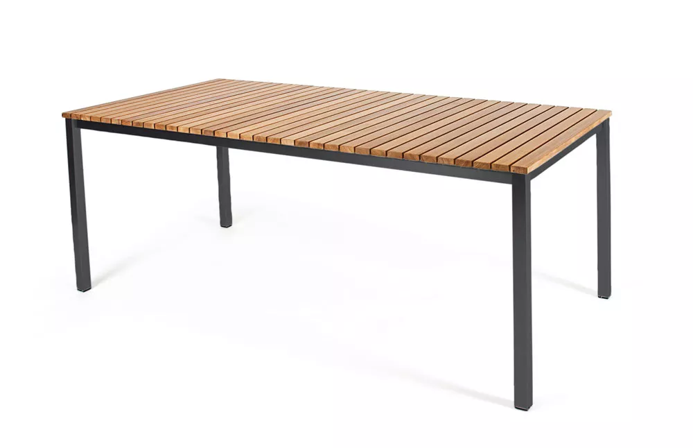 - Tischplatte: Teakholz