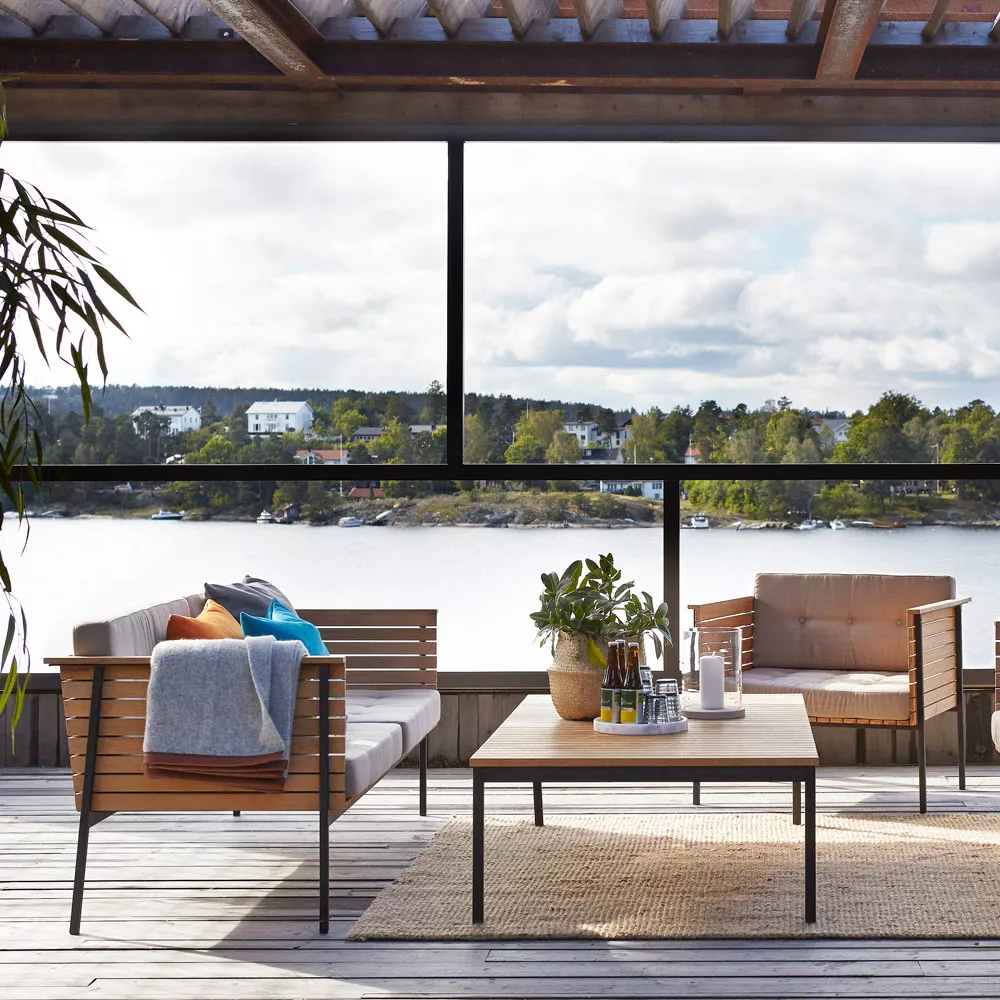 Skargaarden Djurö Outdoor Kaffeetisch • Loungetisch Ø 79 cmDjurö ist ein geheimer Ort, der sich von der Welt isoliert, in der Mitte des Vänern Sees befindet. Skargaardens Möbelserie Djurö ist nicht ganz so geheim. Djurö Gartenmöbel Kollektion ist von Matilda Lindblom entworfen, von den traditionellen skandinavischen Teak Möbeln der 50er Jahre inspieriert, jedoch an die Moderne angepasst worden. Eine exquisite Lounge- sowie Essgruppe in Teak: Der Sessel und Armlehnstuhl sind mit Sitz und Rückenlehne aus Batyline® Gewebe oder wahlweise komplett aus Teakholz gefertigt verfügbar. Der passende Teakholz Hocker bildet mit Djurö Gartenessel eine besonders bequeme Einheit. Das Batyline® Gewebe ist strapazierfähig und gut geeignet den Umwelteinflüssen wie Sonne, Wasser und Wind zu widerstehen. Die Djurö Kollektion bietet drei hochwertige Gartentische zur Auswahl - rund Ø 110 cm, rechteckig 200 × 85 und 100 × 85 cm. Wenn Sie das ursprüngliche Aussehen der Djurö Kollektion im Outdoor Einsatz behalten möchten, können die Möbelstücke jährlich geölt werden. Sonst wird langsam eine schöne graue Patinierung entstehen, die Djurö noch einzigartiger macht. Produkteigenschaften Gestell aus Teakholz Tischplatte: Teakholz belattet wetterfeste Materialien leicht zu reinigen Maße: (Ø × H) 79 × 38 cm Gewicht: 11 Kg