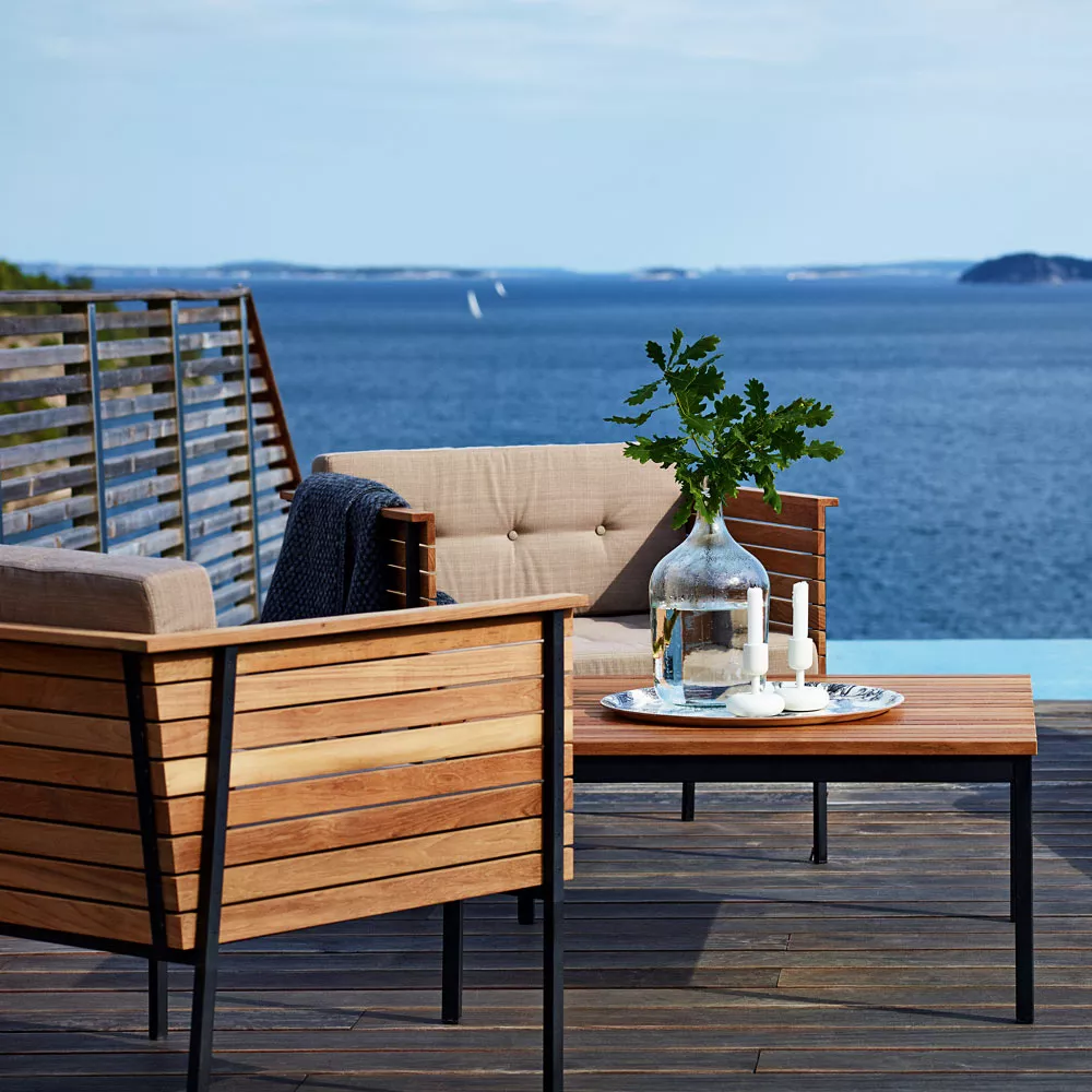 Skargaarden Djurö Outdoor Esstisch • Gartentisch 100 × 85 cmDjurö ist ein geheimer Ort, der sich von der Welt isoliert, in der Mitte des Vänern Sees befindet. Skargaardens Möbelserie Djurö ist nicht ganz so geheim. Djurö Gartenmöbel Kollektion ist von Matilda Lindblom entworfen, von den traditionellen skandinavischen Teak Möbeln der 50er Jahre inspieriert, jedoch an die Moderne angepasst worden. Eine exquisite Lounge- sowie Essgruppe in Teak: Der Sessel und Armlehnstuhl sind mit Sitz und Rückenlehne aus Batyline® Gewebe oder wahlweise komplett aus Teakholz gefertigt verfügbar. Der passende Teakholz Hocker bildet mit Djurö Gartenessel eine besonders bequeme Einheit. Das Batyline® Gewebe ist strapazierfähig und gut geeignet den Umwelteinflüssen wie Sonne, Wasser und Wind zu widerstehen. Die Djurö Kollektion bietet drei hochwertige Gartentische zur Auswahl - rund Ø 110 cm, rechteckig 200 × 85 und 100 × 85 cm. Wenn Sie das ursprüngliche Aussehen der Djurö Kollektion im Outdoor Einsatz behalten möchten, können die Möbelstücke jährlich geölt werden. Sonst wird langsam eine schöne graue Patinierung entstehen, die Djurö noch einzigartiger macht. Produkteigenschaften Gestell aus Teakholz Tischplatte: Teakholz belattet wetterfeste Materialien leicht zu reinigen Maße: (B × T × H) 100 × 85 × 73 cm Gewicht: 21 Kg