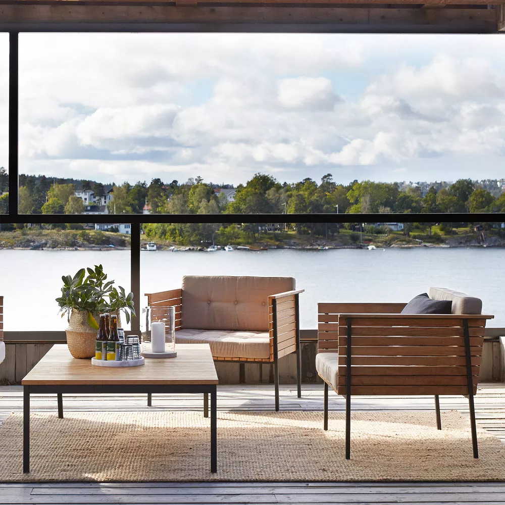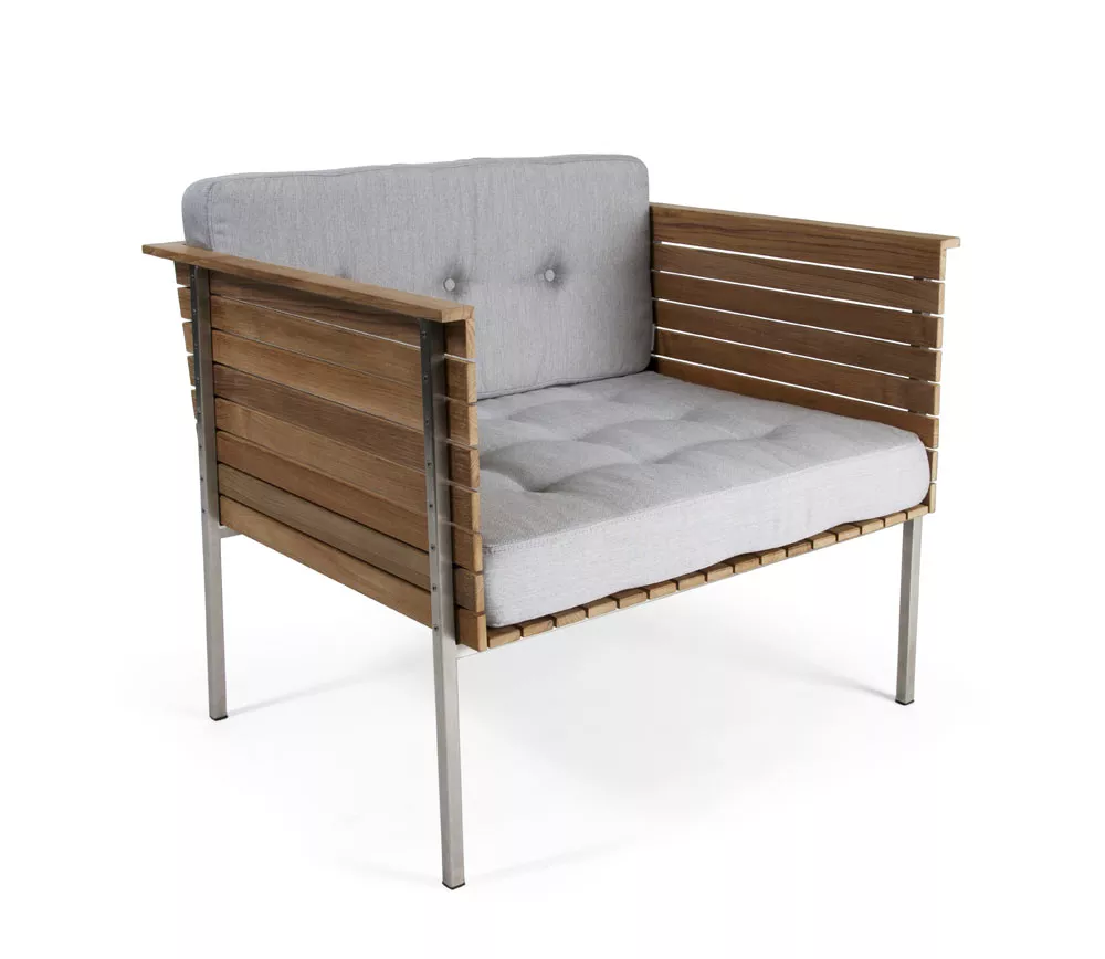 Skargaarden Djurö • Loungesessel 78 cmDjurö ist ein geheimer Ort, der sich von der Welt isoliert, in der Mitte des Vänern Sees befindet. Skargaardens Möbelserie Djurö ist nicht ganz so geheim. Djurö Gartenmöbel Kollektion ist von Matilda Lindblom entworfen, von den traditionellen skandinavischen Teak Möbeln der 50er Jahre inspieriert, jedoch an die Moderne angepasst worden. Eine exquisite Lounge- sowie Essgruppe in Teak: Der Sessel und Armlehnstuhl sind mit Sitz und Rückenlehne aus Batyline® Gewebe oder wahlweise komplett aus Teakholz gefertigt verfügbar. Der passende Teakholz Hocker bildet mit Djurö Loungesessel eine besonders bequeme Einheit. Das Batyline® Gewebe ist strapazierfähig und gut geeignet den Umwelteinflüssen wie Sonne, Wasser und Wind zu widerstehen. Die Djurö Kollektion bietet drei hochwertige Gartentische zur Auswahl - rund Ø 110 cm, rechteckig 200 × 85 und 100 × 85 cm. Wenn Sie das ursprüngliche Aussehen der Djurö Kollektion im Outdoor Einsatz behalten möchten, können die Möbelstücke jährlich geölt werden. Sonst wird langsam eine schöne graue Patinierung entstehen, die Djurö noch einzigartiger macht. Produkteigenschaften Gestell aus Teakholz Sitz- und Rückenfläche: Teakholz / Batyline® wetterfeste Materialien leicht zu reinigen Maße: (B × T × H) 78 × 66 × 70 cm Gewicht: 9 Kg