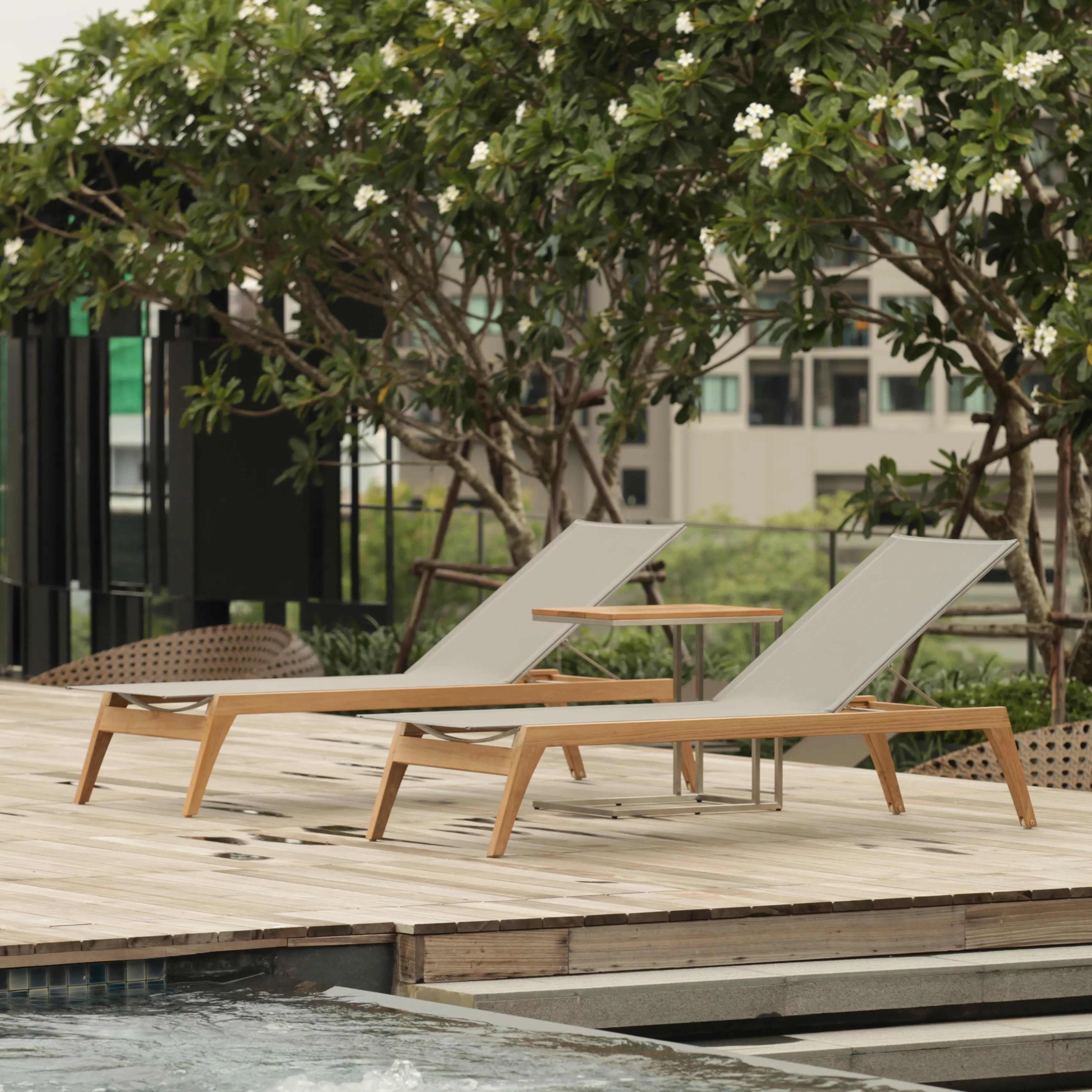 Sonnenliege Monaco von Royal Mirage® aus Teakholz und Batyline® Bespannung.
