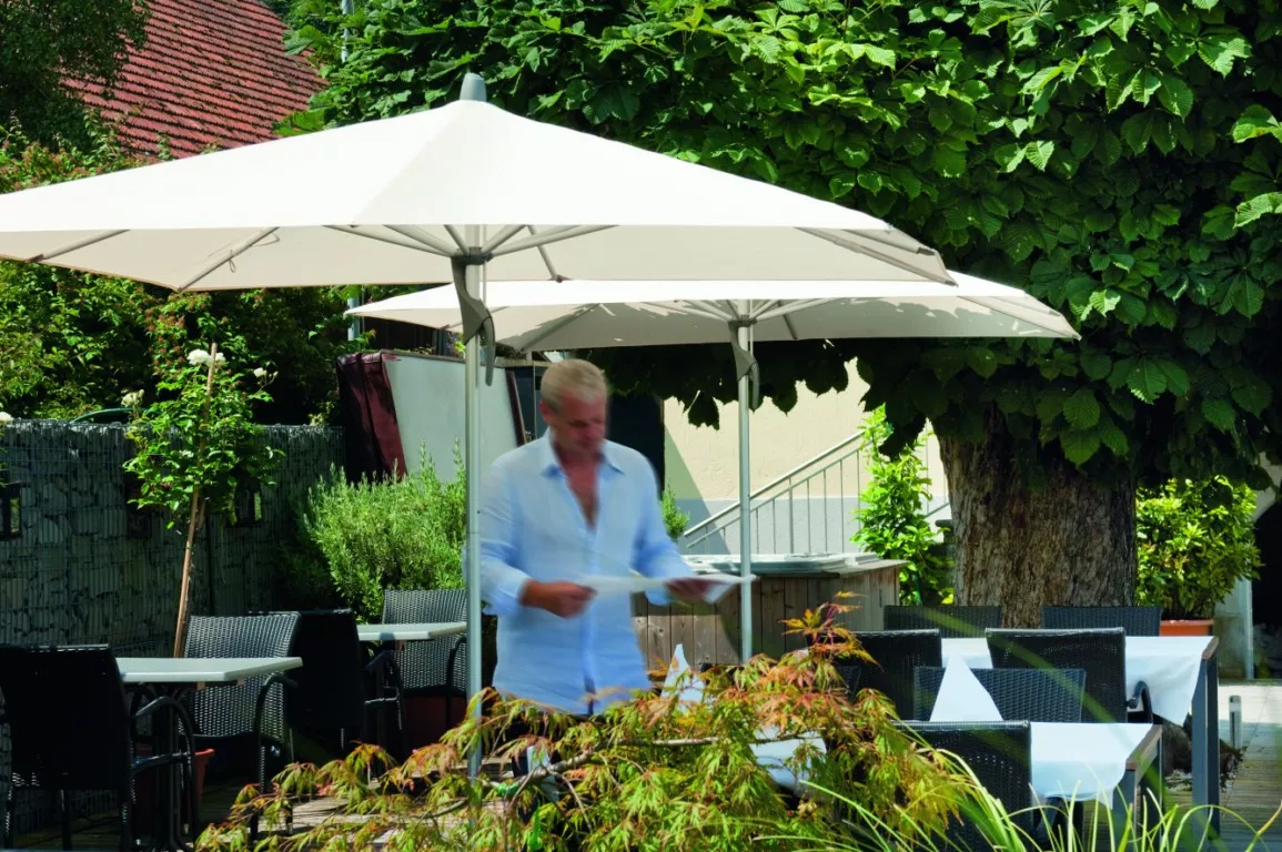 Fortino easy ist mehr als ein einfacher, zweckmässiger und grosser Sonnenschirm. Sein Sonnendach filtert schädliche UV-Strahlen nachhaltig und bietet Sonnenschutz nach