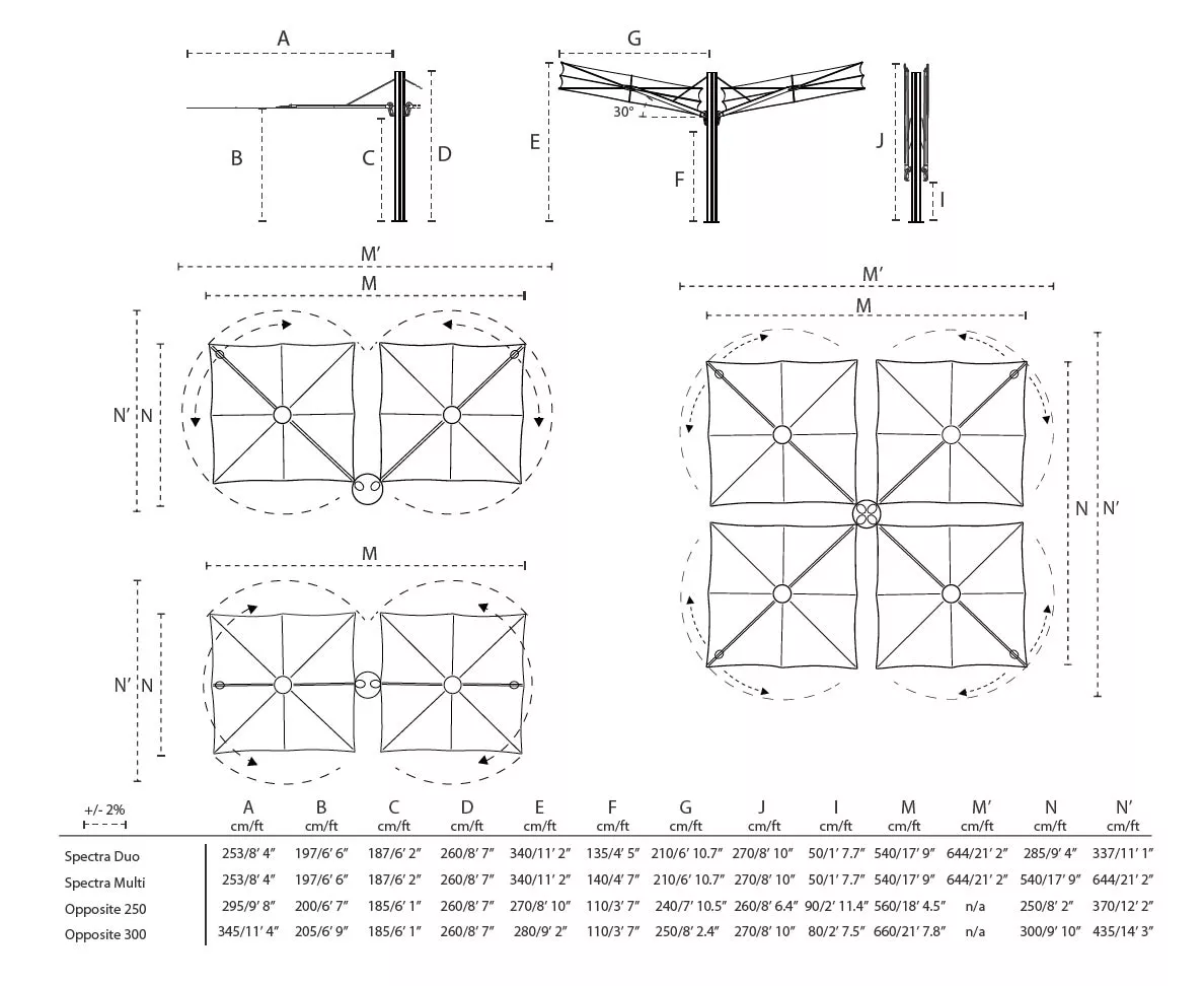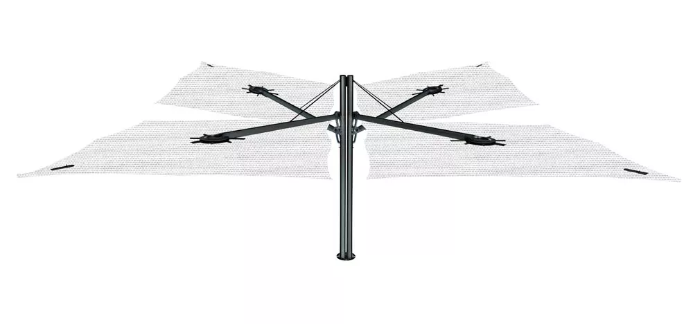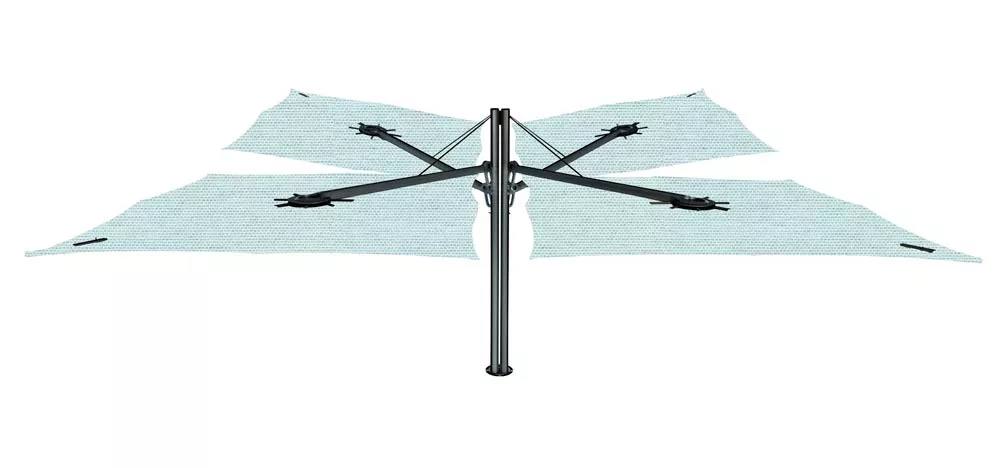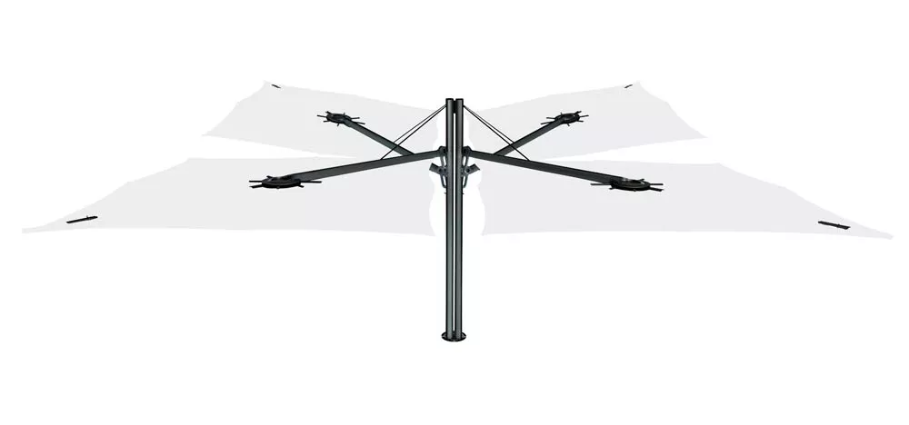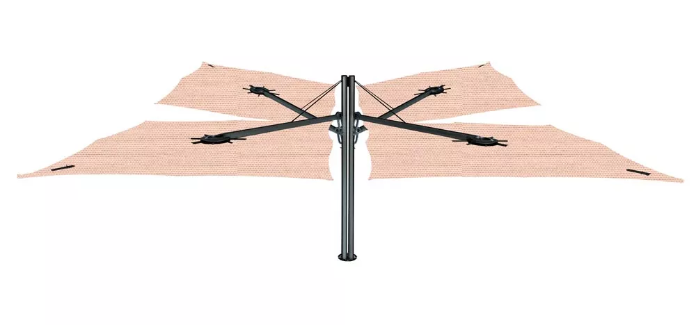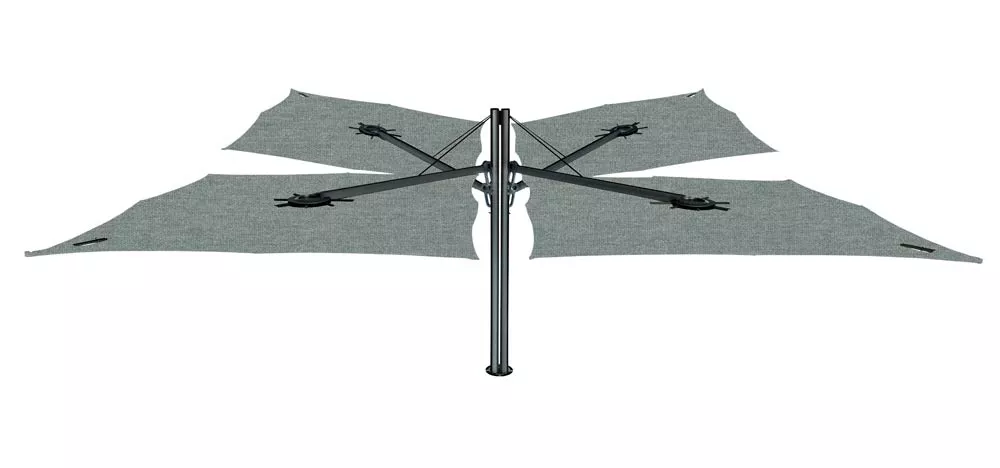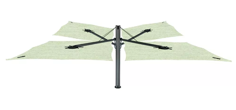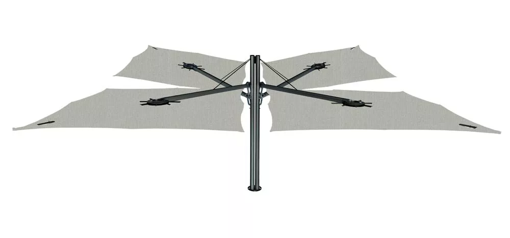 Dieser innovative Schattenspender hat ein einzigartiges geometrisches Design und eine ergonomische Bedienung. Er kann einfach jeder Situation angepasst werden, so wie gewünschte Höhe‚ unterschiedliche Neigungen und eine ganz breite, ausgesprochene Farbpalette. Die Formgebung des Spectra-Sonnenschirms ist kompromisslos und minimalistisch und lässt sich leicht mit straffen Design-Möbeln kombinieren. Der Schirm wird an einem Arm montiert und die Neigung kann leicht geändert werden.