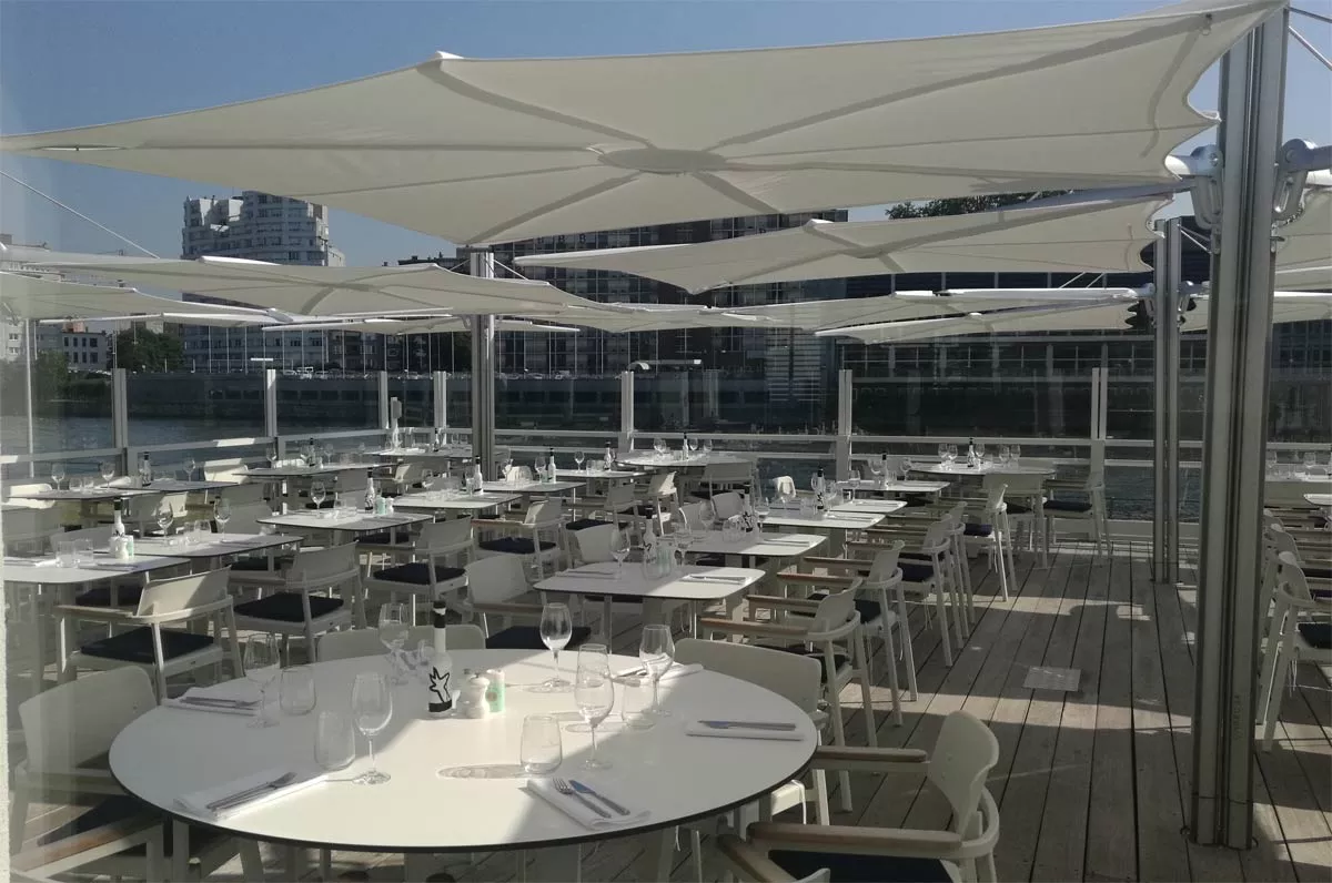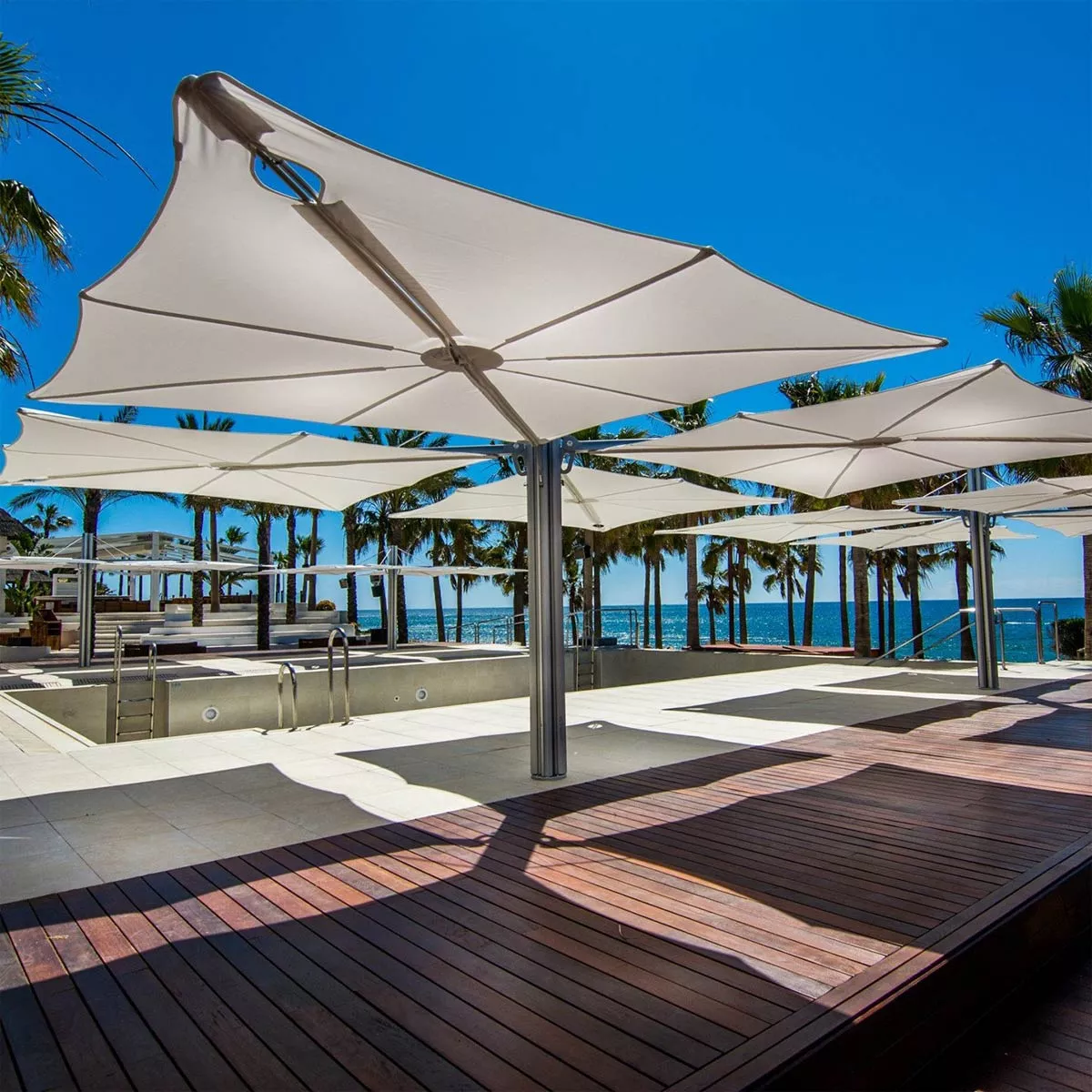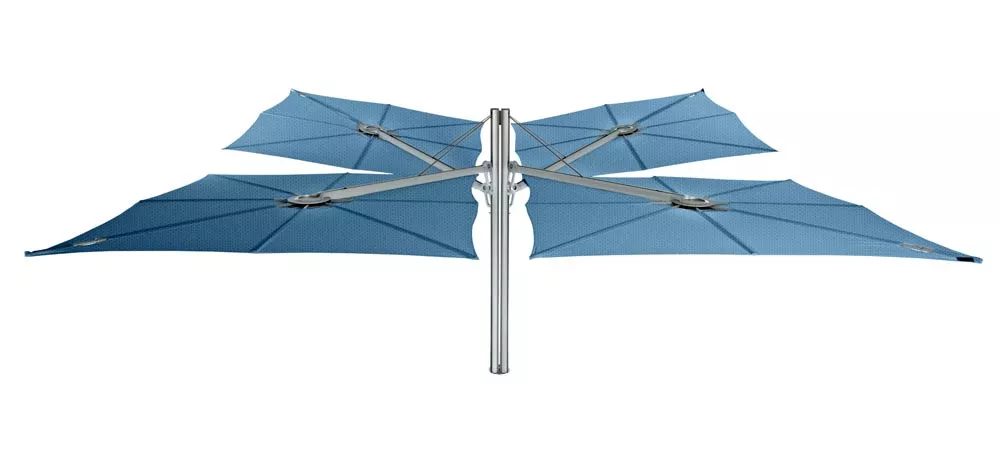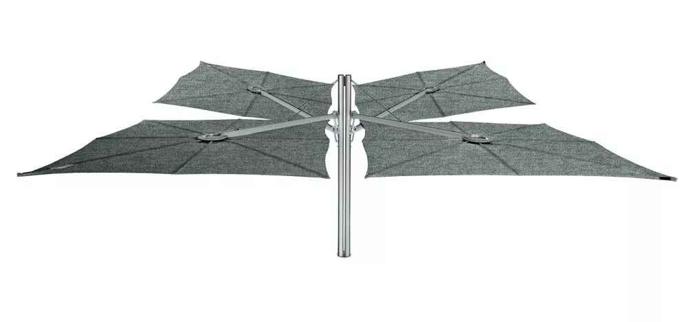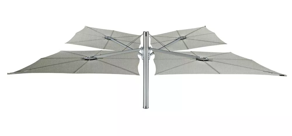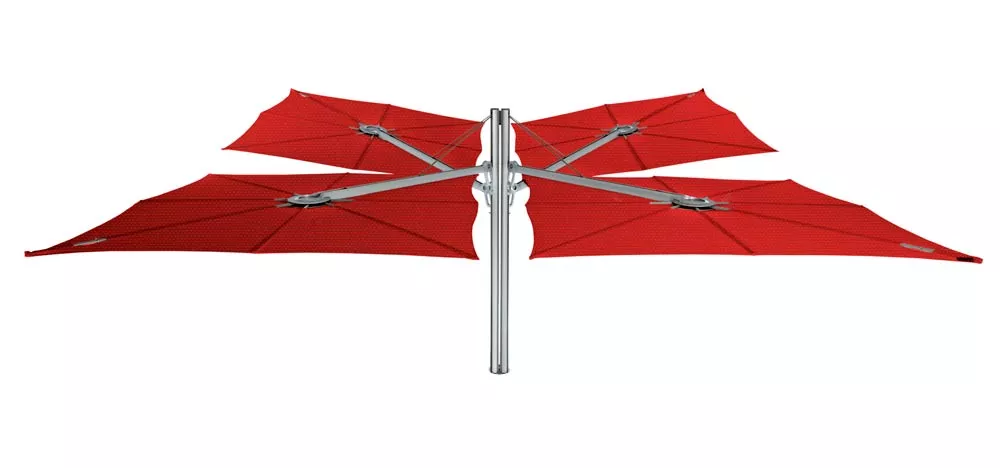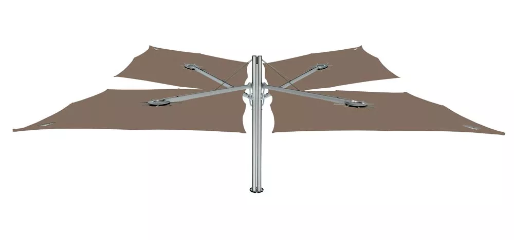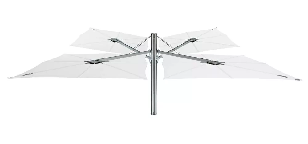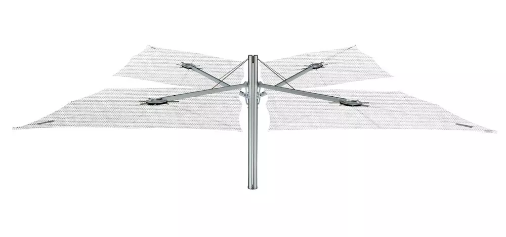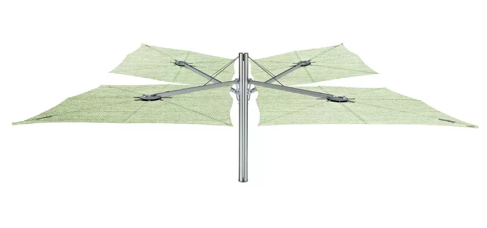 Dieser innovative Schattenspender hat ein einzigartiges geometrisches Design und eine ergonomische Bedienung. Er kann einfach jeder Situation angepasst werden, so wie gewünschte Höhe‚ unterschiedliche Neigungen und eine ganz breite, ausgesprochene Farbpalette. Die Formgebung des Spectra-Sonnenschirms ist kompromisslos und minimalistisch und lässt sich leicht mit straffen Design-Möbeln kombinieren. Der Schirm wird an einem Arm montiert und die Neigung kann leicht geändert werden.