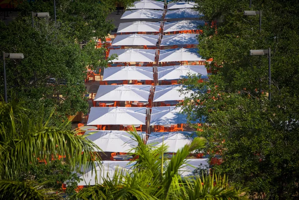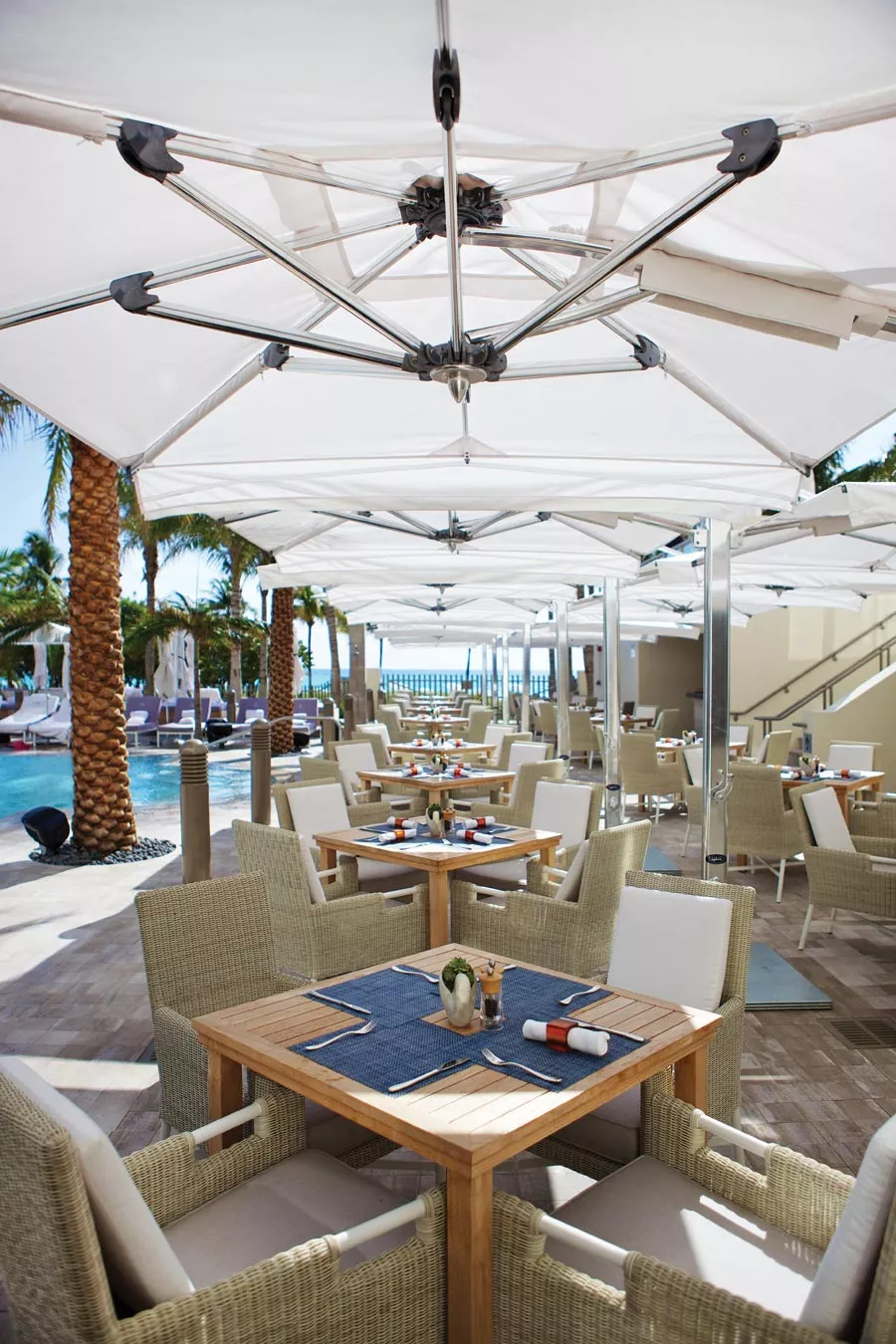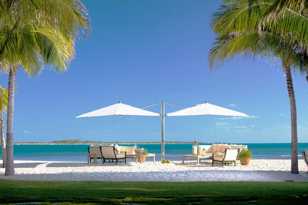 Im Ocean Master MAX Dual Cantilever Classic™ von TUUCI trifft Kunst auf Technik und verbindet beide auf harmonische Weise zu einer Schattenkomposition. Der exquisite Doppelschirm bietet großzügigen, luxuriösen Schatten, dank dem zwei eigene Outdoor-Wohnbereiche unter nur einem Sonnenschirm Platz finden – unterbrechungsfreier Schatten nach Maß. Dank des 4:1-Tandem-Einholkurbelsystems lässt sich der Dual Cantilever sehr einfach bedienen. Die einzelne Kurbel öffnet gleitend beide Schattenspender und sorgt so für freien Durchgang und unterbrechungsfreie Atmosphäre. Dank des extrem robusten Drehpunkts aus gefrästem Aluminium mit automatischem Teleskopmast kann die Bespannung mühelos über Tischen und Stühlen geschlossen werden.