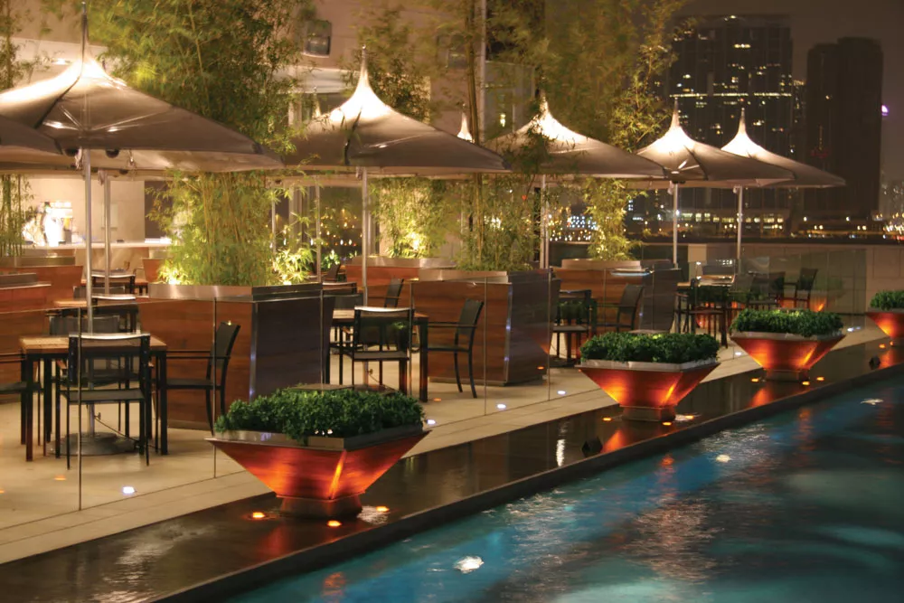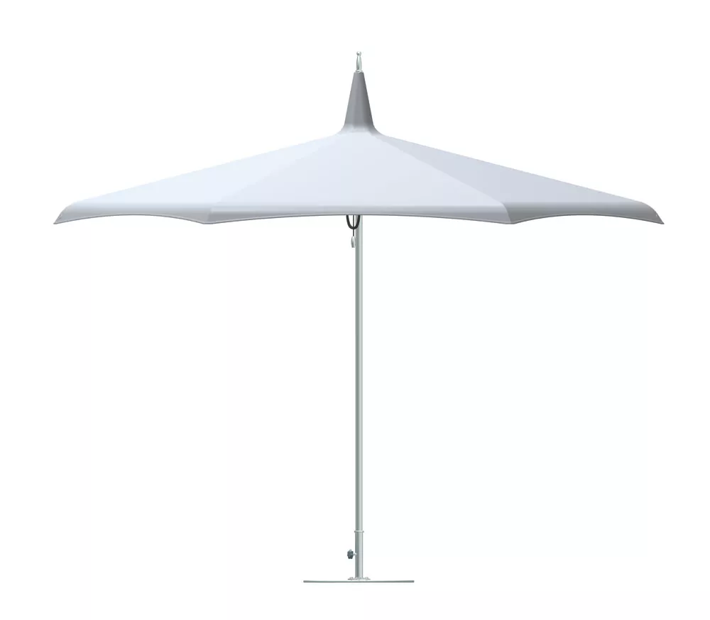 Design aus der alten Welt verbindet sich mit modernsten Komponenten in diesem attraktiven und funktionalen Sonnenschirm. Das zum Patent angemeldete Gaskolben-Selbstspannsystem sorgt für den perfekten Sitz der Bespannung über den bahnbrechenden Streben.
