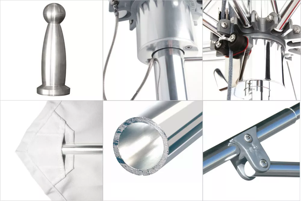 - Mast: Pulverbeschichteter Aluminium Mast