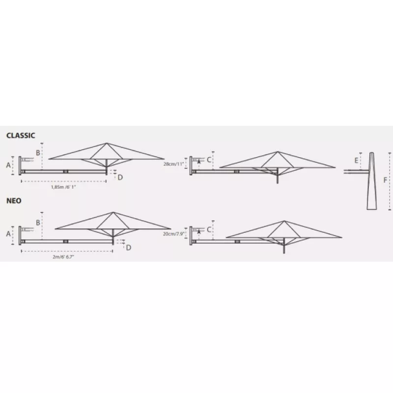 Sonnenschirm Paraflex Monoflex Neo von Umbrosa • Materialien und Beschreibung: