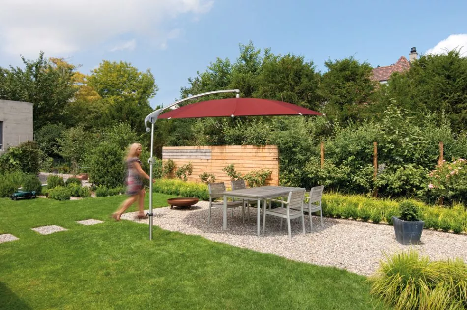 Pendalex P+ im modernen Design bietet optimale Beschattung. Dafür ist die äußerst robuste Technik besorgt. So lässt sich der Schirm dank ergonomischer Bedienung individuell nach dem Sonnenstand ausrichten. Auch als Sichtschutz eignet er sich perfekt. Mit der integrierten Kurbel, die sich für Rechts- und Linkshänder montieren lässt, öffnet und schließt sich der Schirm einfach und bequem. Im geschlossenen Zustand benötigt der Schirm nur wenig Platz. Zudem ist der Schirmüberzug auswechselbar.