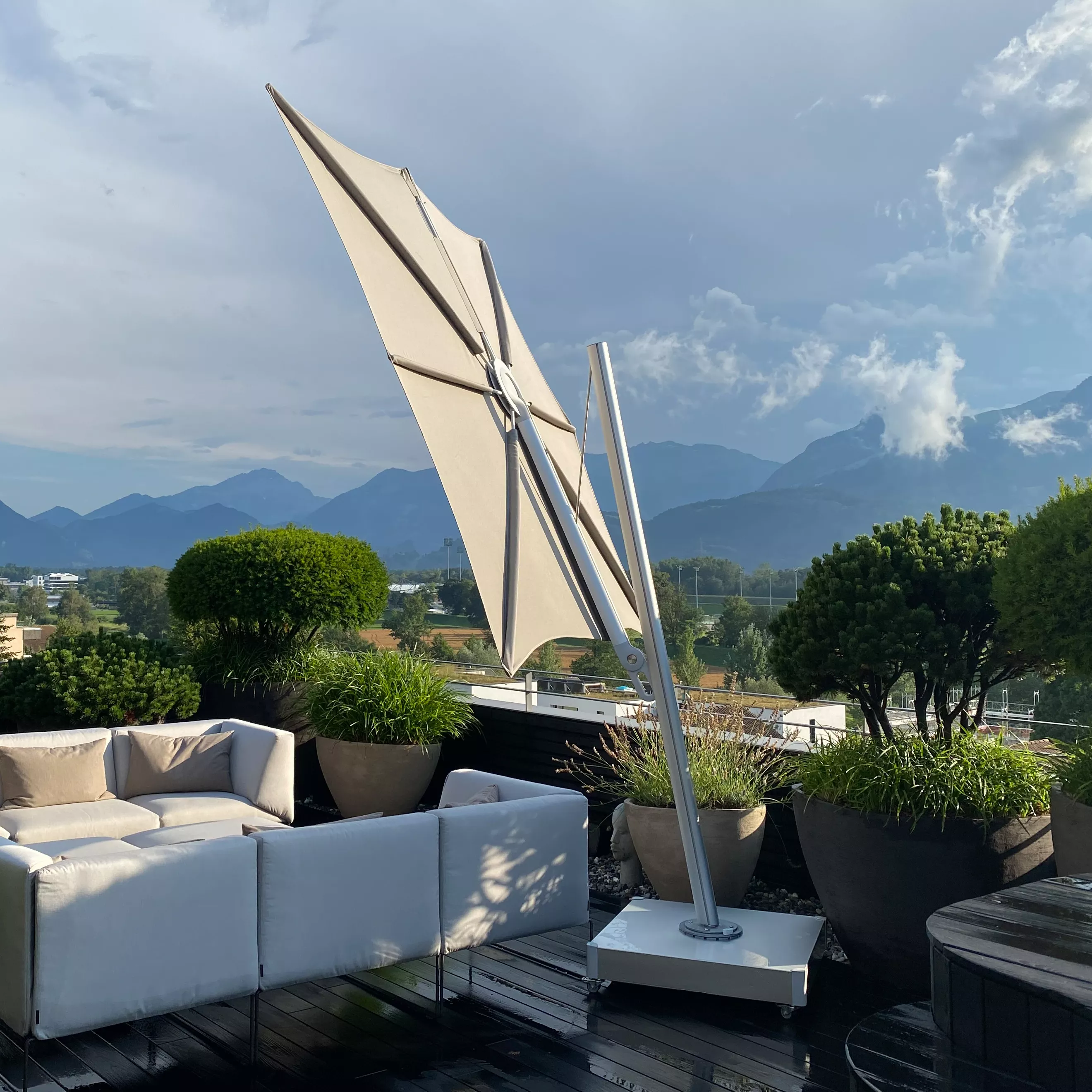 - Futuristisches Sonnensegel, stufenlos verstellbar.