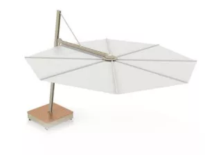 Dieser innovative Schattenspender hat ein einzigartiges geometrisches Design und eine ergonomische Bedienung. Er kann einfach jeder Situation angepasst werden, so wie gewünschte Höhe‚ unterschiedliche Neigungen und eine ganz breite, ausgesprochene Farbpalette. Die Formgebung des Versa UX-Sonnenschirms ist kompromisslos und minimalistisch und lässt sich leicht mit straffen Design-Möbeln kombinieren. Der Schirm wird an einem Arm montiert und die Neigung kann leicht geändert werden.