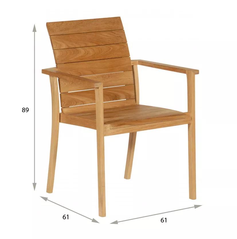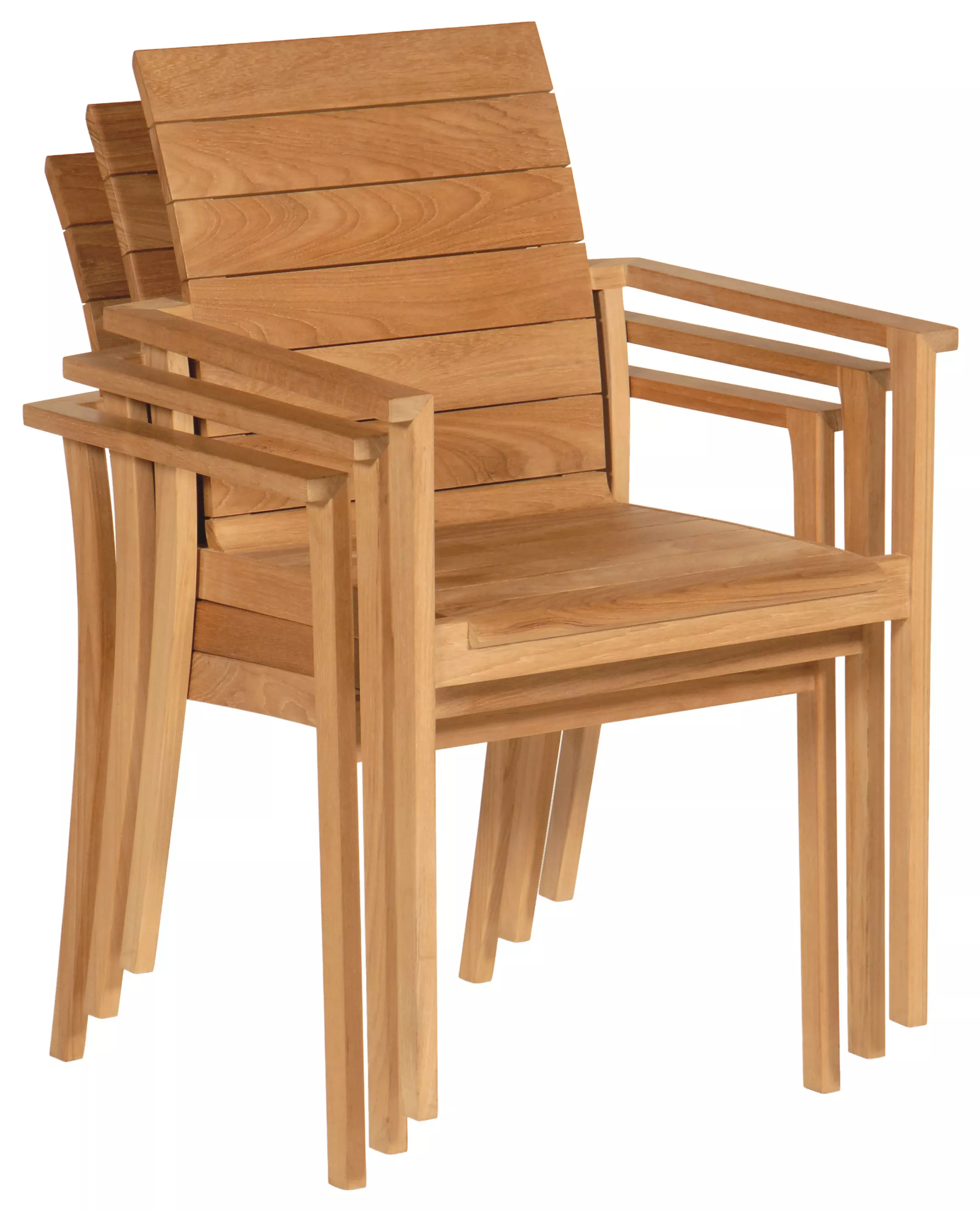 Der stapelbare Nizza Chair von Royal Mirage überzeugt durch sein minimalistisches Design und höchste Qualität. Gefertigt aus ausgereiftem und sorgfältig ausgewähltem Teakholz, profitiert dieser Stuhl von einem natürlichen, hohen Ölgehalt, der ihm außergewöhnliche Stabilität und Widerstandskraft selbst unter extremen Witterungsbedingungen verleiht. In Kombination mit hochwertigen Edelstahl-Elementen entsteht eine hervorragende Verbindung, die den Nizza Chair zur idealen Wahl für stilvolle Outdoor- und Gartenmöbel macht – robust, elegant und perfekt stapelbar für unkomplizierte Lagerung und vielseitigen Einsatz.