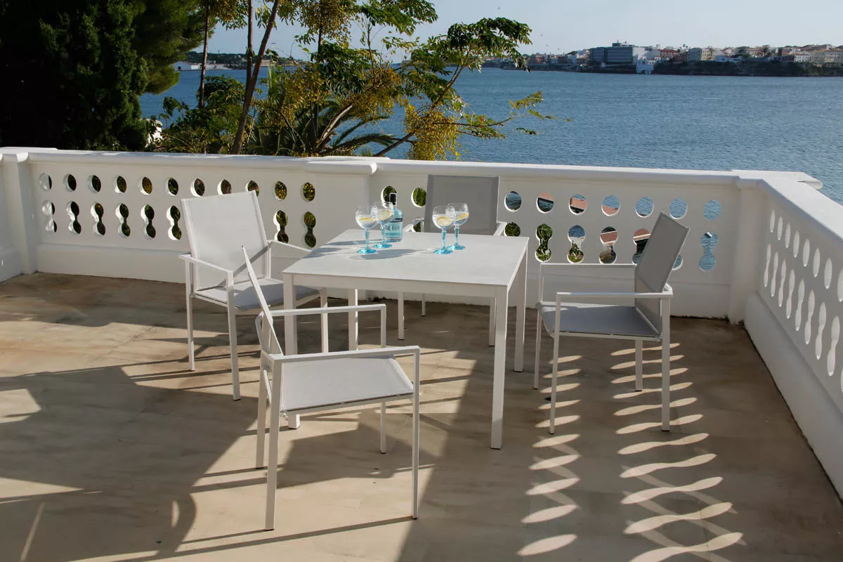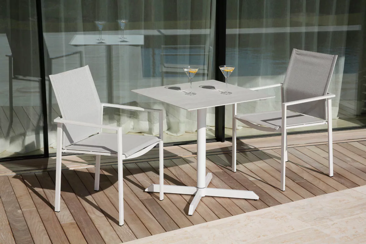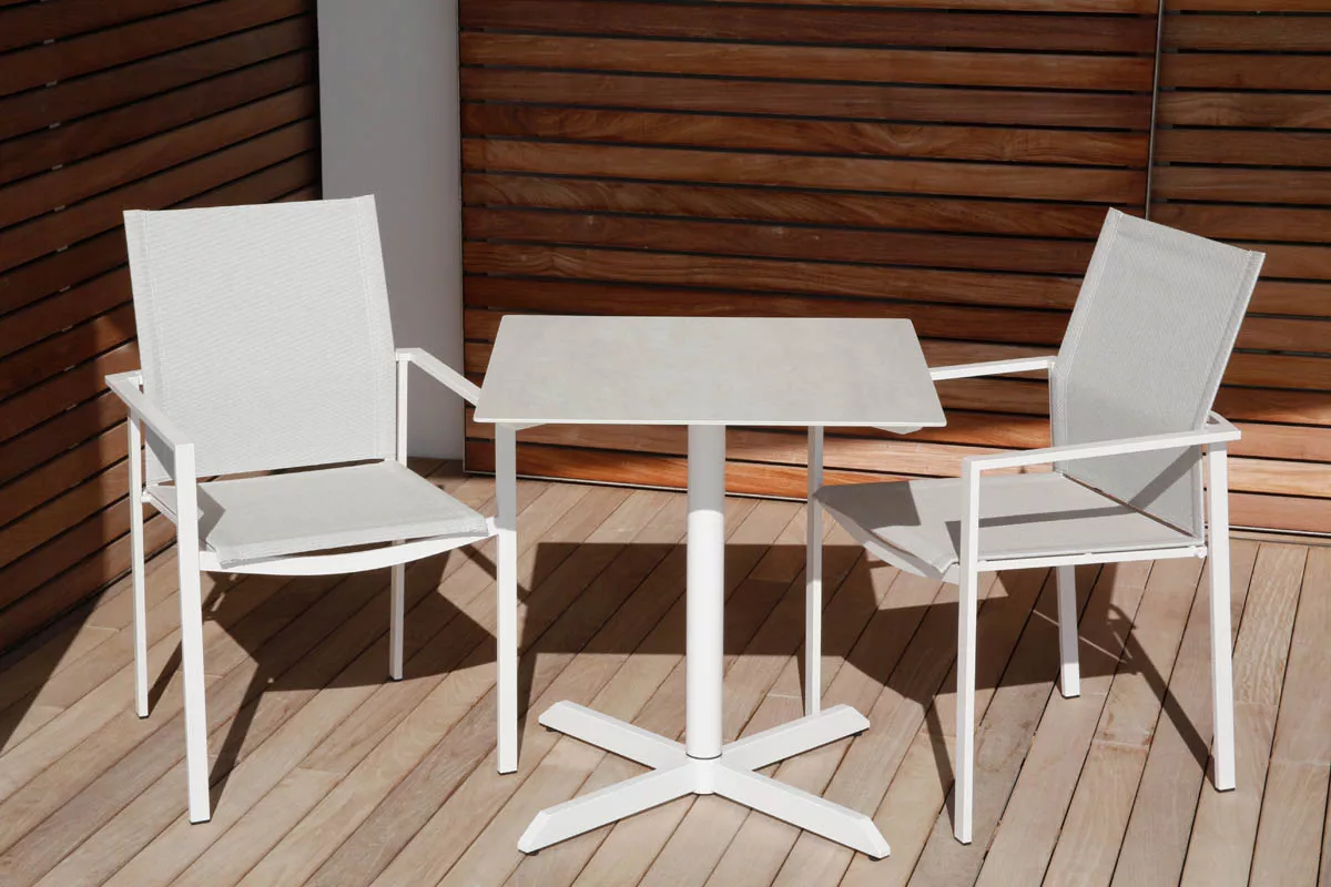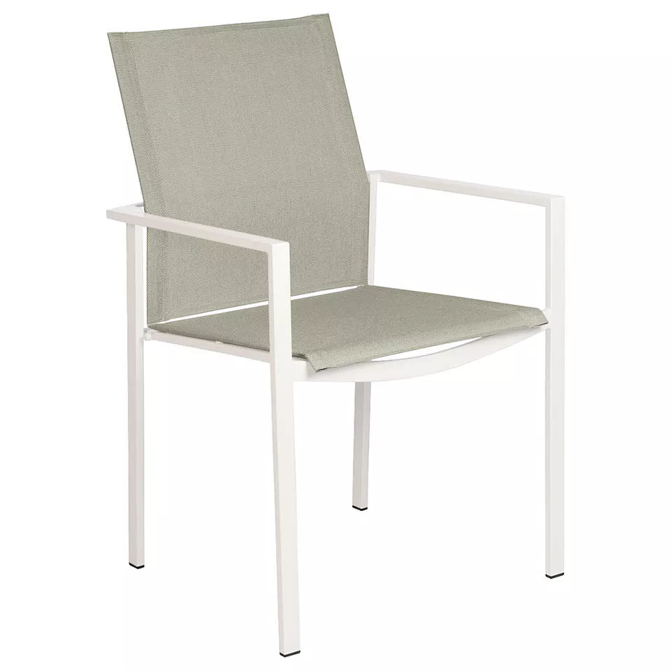 Barlow Tyrie Stapelbarer Armlehnstuhl Mercury (Armlehnen weiß) Stapelbarer Essstuhl Mercury mit Bespannung aus Synthetikgewebe und einem Gestell aus Edelstahl. Das Synthetikgewebe ist besonders witterungsbeständig, UV-beständig und reißfest. Es bietet zusätzlich einen hervorragenden Sitzkomfort und ist extrem pflegeleicht. Barlow Tyrie verwendet allerbesten Edelstahl, welcher korrosionsbeständig und leicht zu reinigen ist. Dieses Material ist auch geeignet für salzwassernahe Gebiete, Inseln etc. Hochwertiger Edelstahl Synthetikgewebe Ganzjährig wetterfest Pflegeleicht