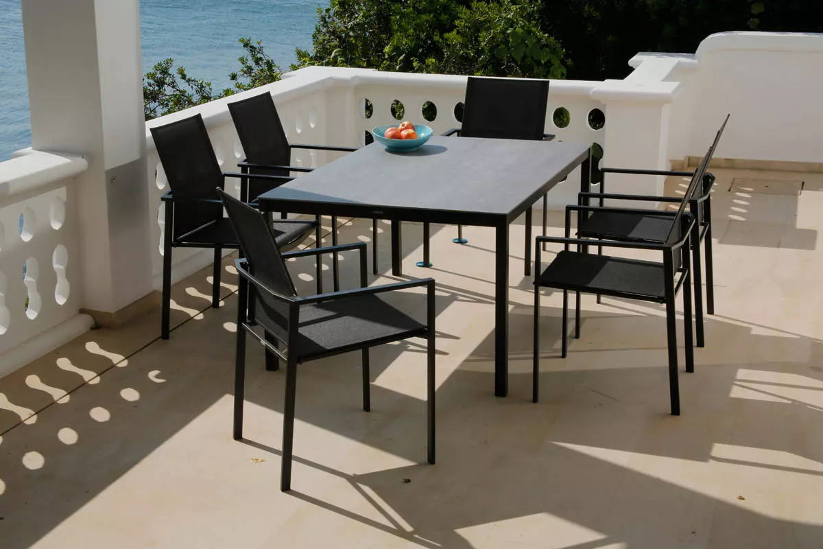 Barlow Tyrie Stapelbarer Armlehnstuhl Mercury (Armlehnen Graphite) Stapelbarer Essstuhl Mercury mit Bespannung aus Synthetikgewebe und einem Gestell aus Edelstahl. Das Synthetikgewebe ist besonders witterungsbeständig, UV-beständig und reißfest. Es bietet zusätzlich einen hervorragenden Sitzkomfort und ist extrem pflegeleicht. Barlow Tyrie verwendet allerbesten Edelstahl, welcher korrosionsbeständig und leicht zu reinigen ist. Dieses Material ist auch geeignet für salzwassernahe Gebiete, Inseln etc. Hochwertiger Edelstahl Synthetikgewebe Ganzjährig wetterfest Pflegeleicht