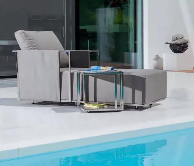In architektonisch klarem, urbanem Design zeigt sich die Kollektion Suite. Dieser nachhaltige Entwurf stellt eine spannende Kombination von exzellent verarbeitetem Edelstahl und weichen, auf Wunsch wetterfesten, Stoffen dar. Durch den modularen Aufbau sind vielfältige Kombinationsmöglichkeiten gegeben. Die praktischen Beistelltische bieten viel Ablagefläche auf zwei Ebenen.