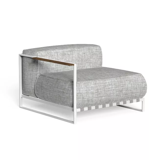 - Gestell: White I1 - Stoff: Light Grey C36 - Gurt: Light Grey B2 - Armlehne: Iroko L8