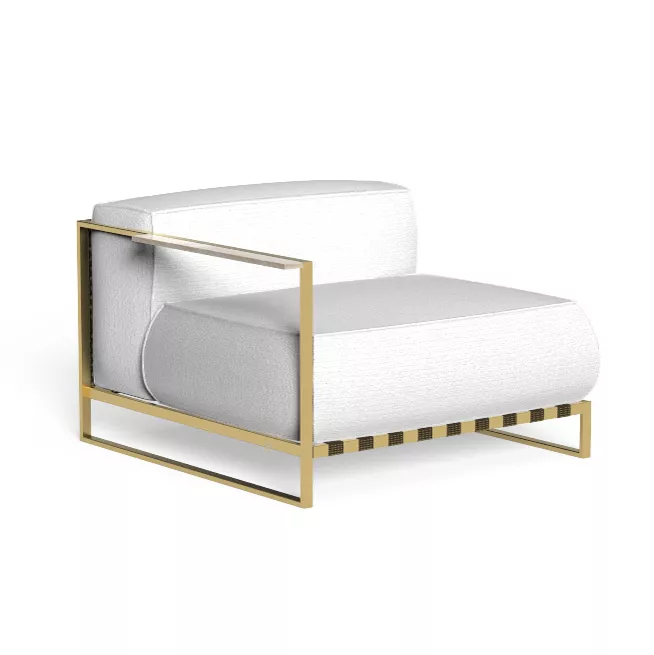 - Gestell: Gold I3 - Stoff: White C75 - Gurt: Gold-Black B7 - Armlehne: Travertino Silver S1